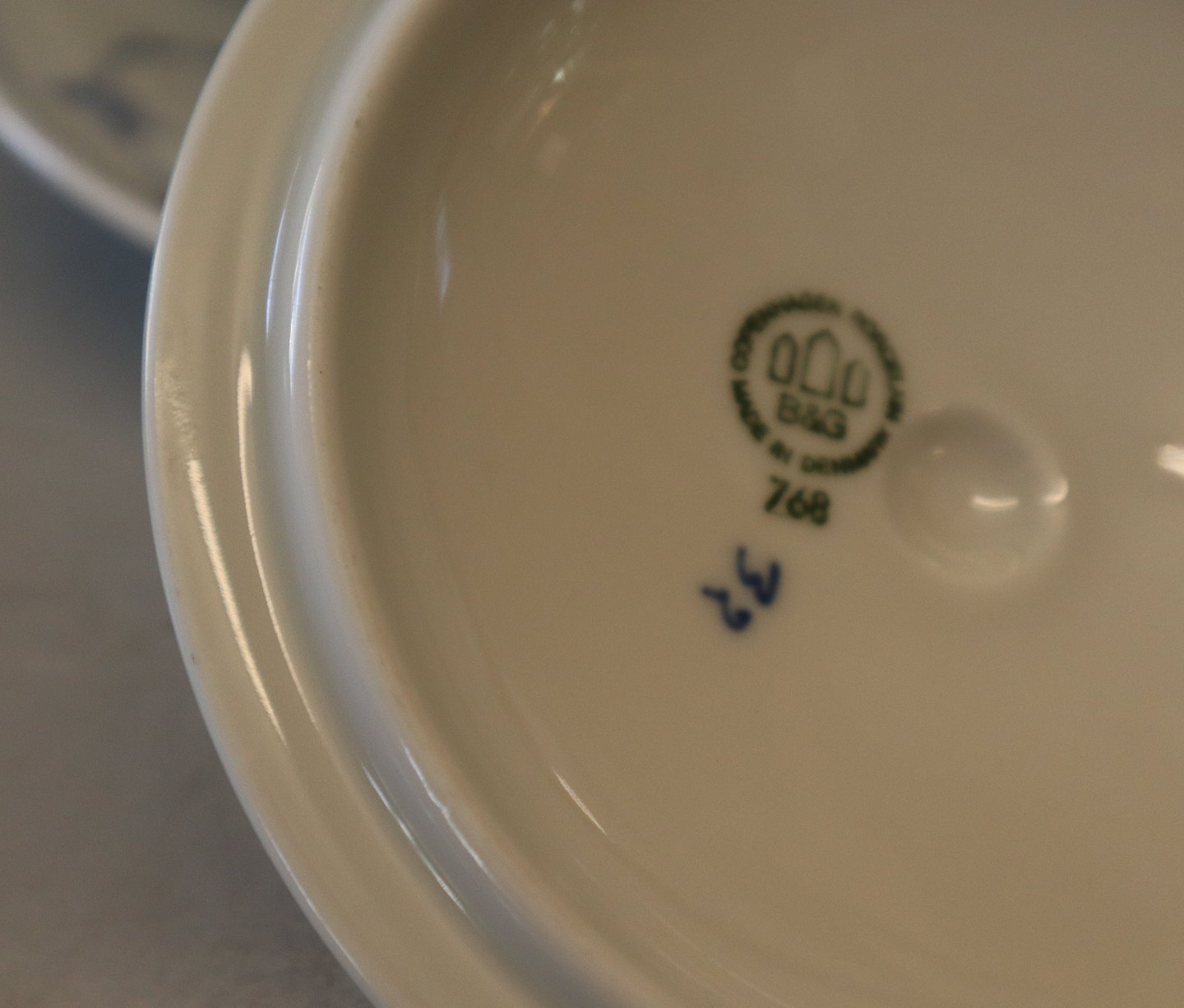 1029 Suppekop 5.5 x 12 cm + to hanke med låg og underkop 17.8 cm (768) Bouillonkop B&G Blåmålet Hotelporcelæn