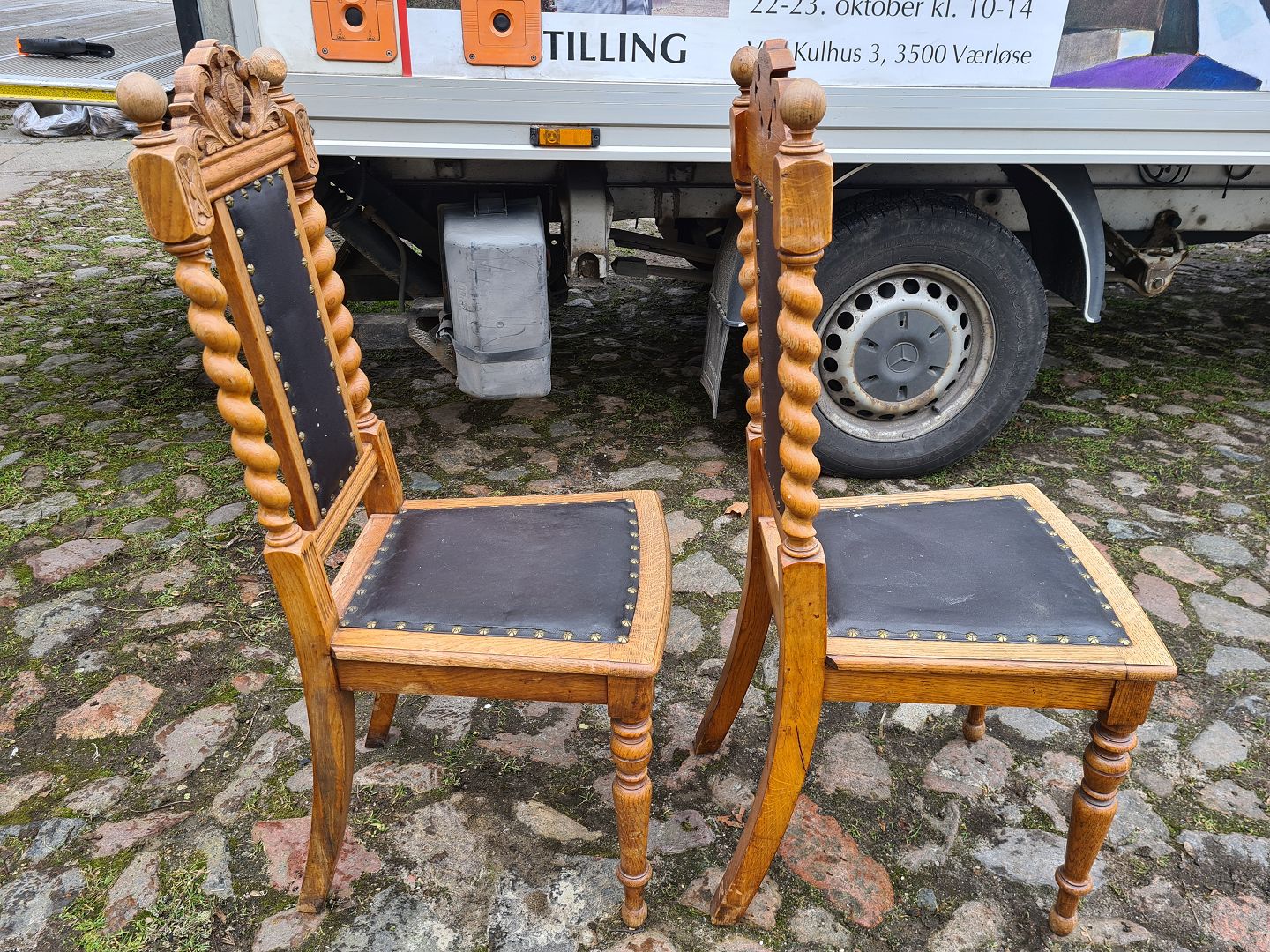 2 stole i egetræ udført med nappa.