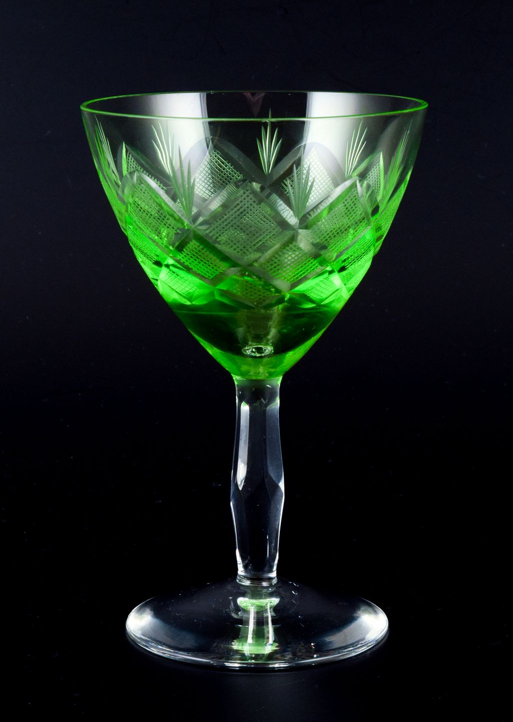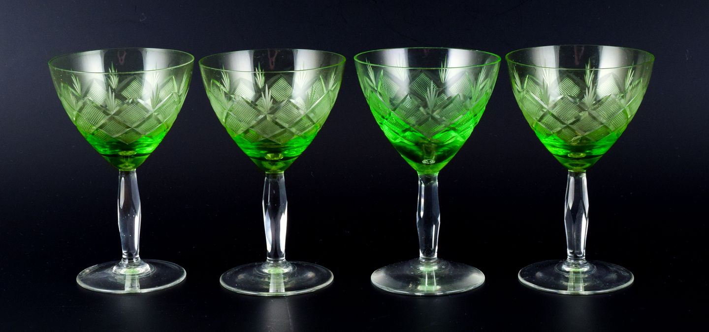 Wien Antik, Lyngby Glas, fire grønne hvidvinglas.