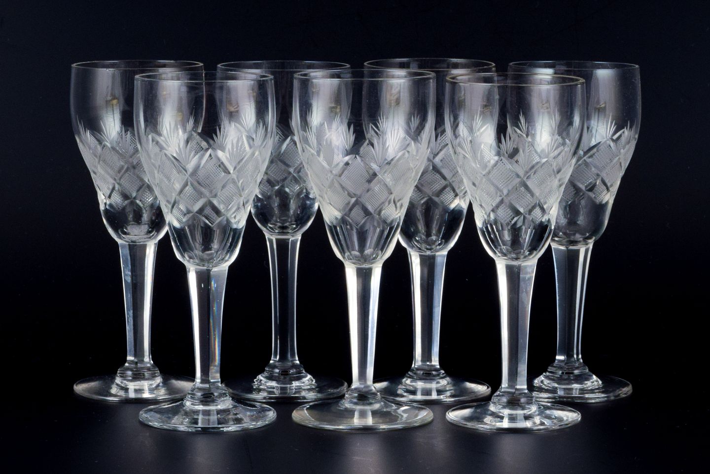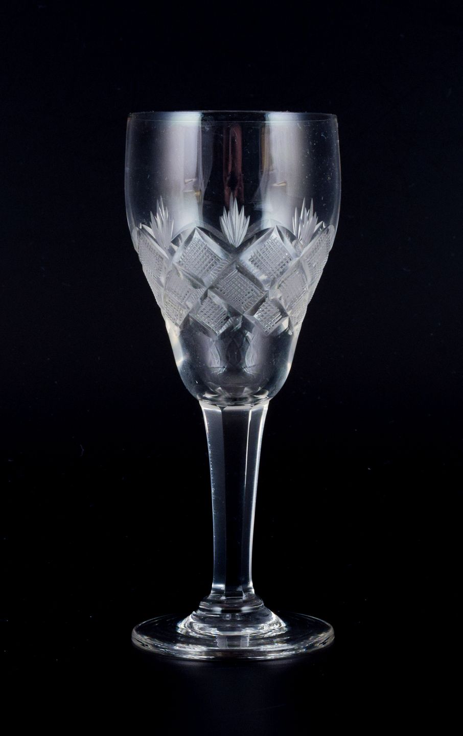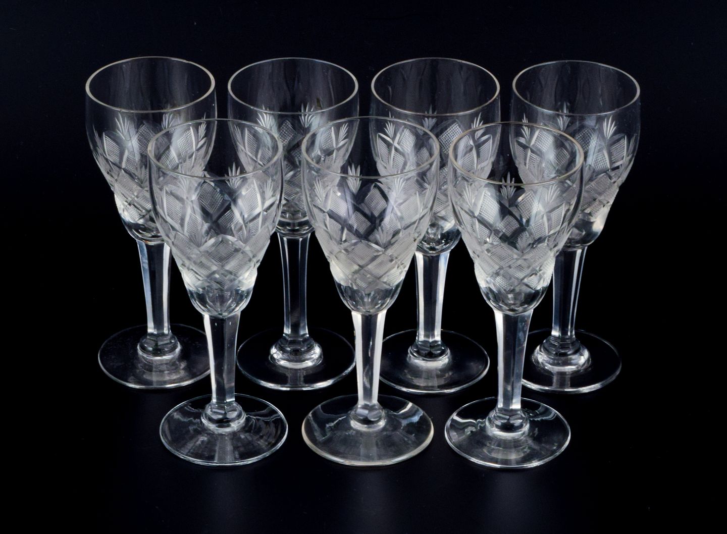 Wien Antik, Lyngby Glas, syv portvinsglas i klart glas.