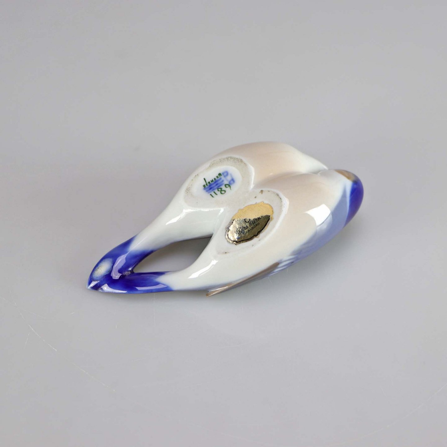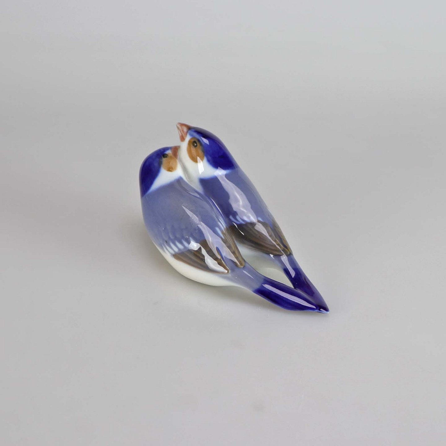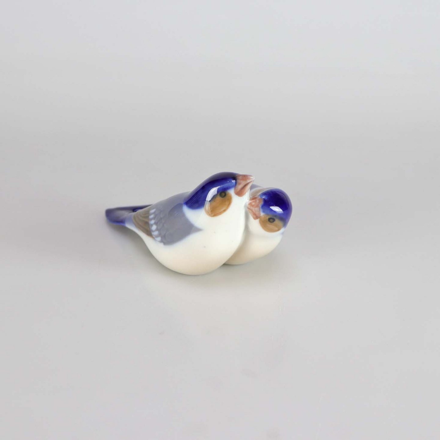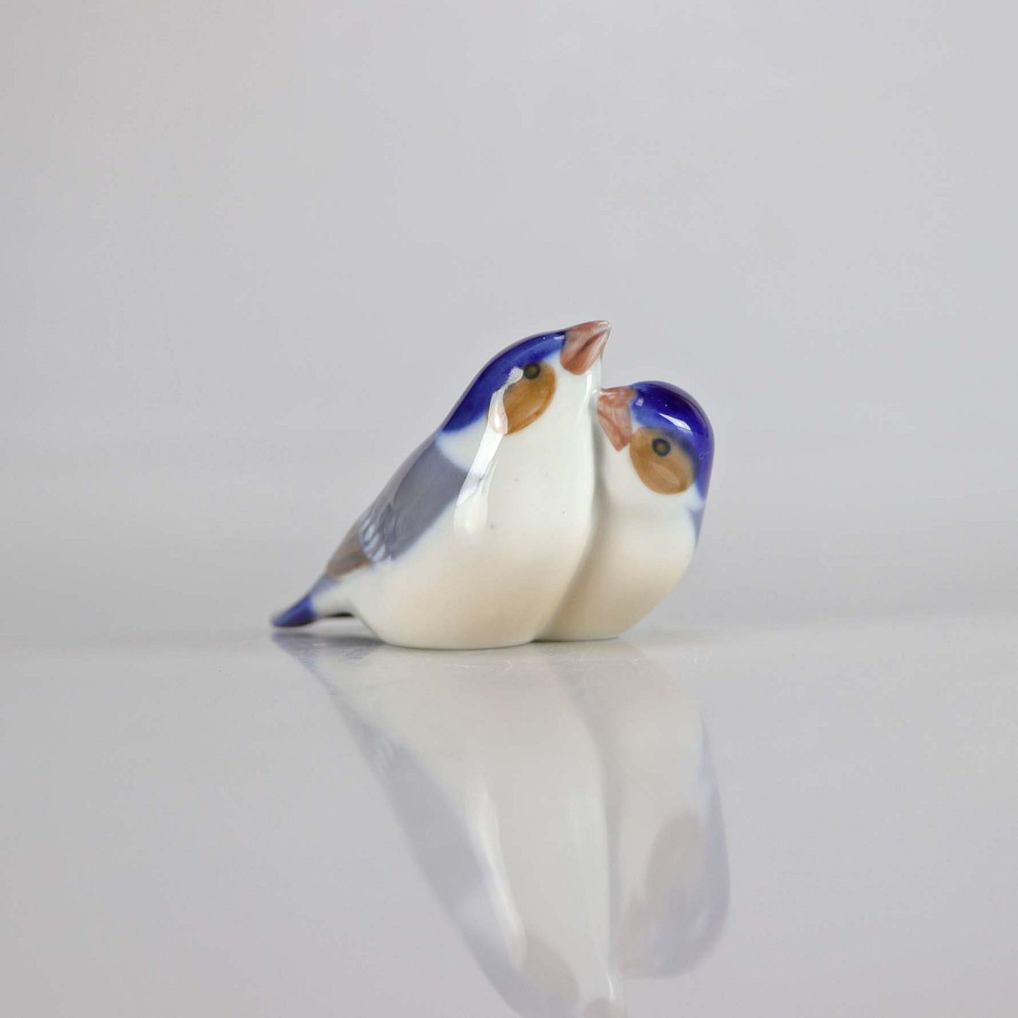 Kongelig porcelæn med to fugle op af hinanden i blå, grå og hvide farver