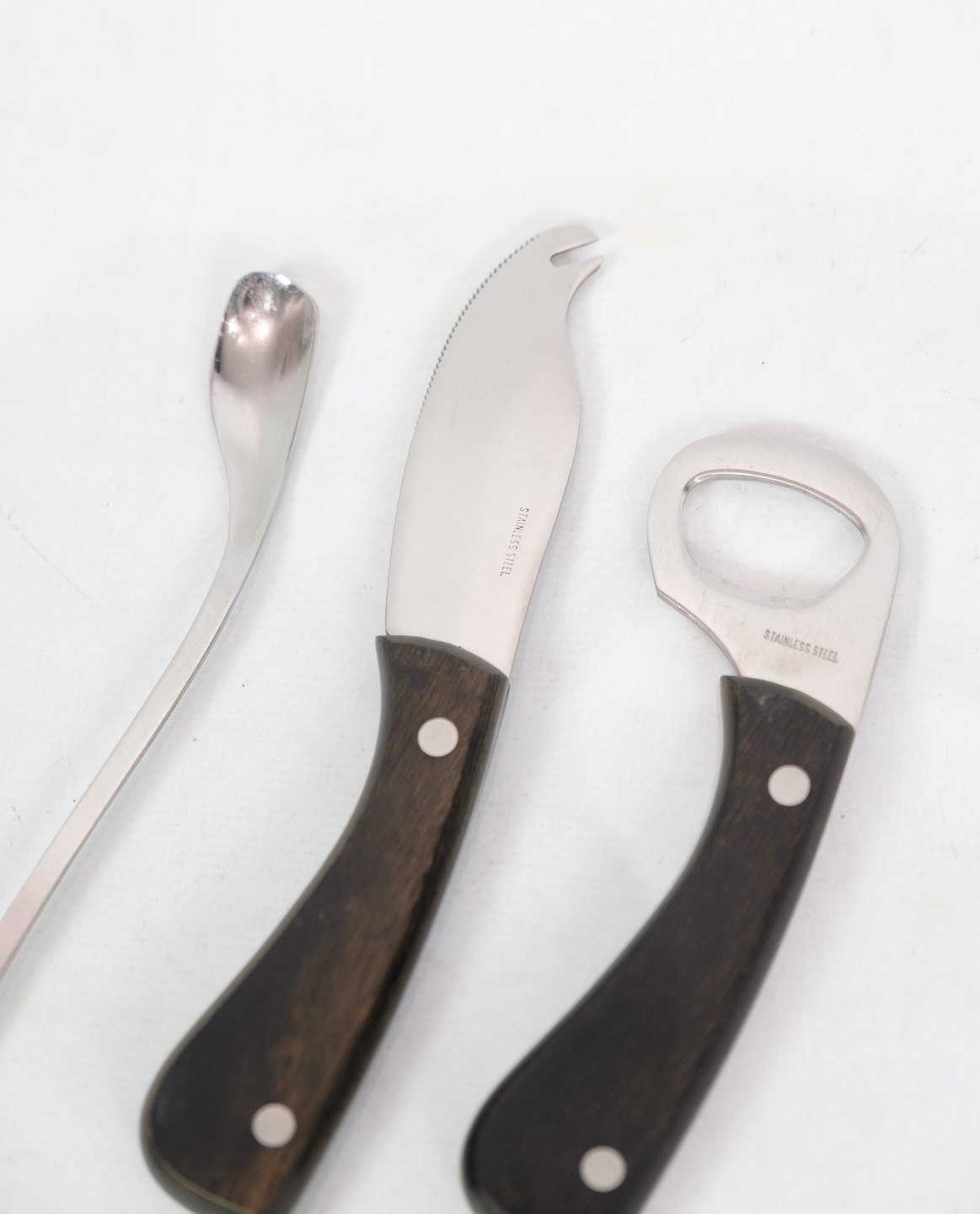 A set of 3 cutlery parts with horn handles and steel from around the 1960s.