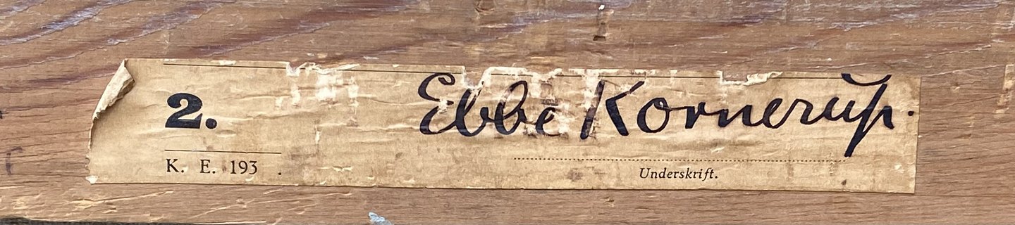 Signeret Ebbe Kornerup samt med etikette fra Kunsternes Efterårsudstilling i 1930’erne.