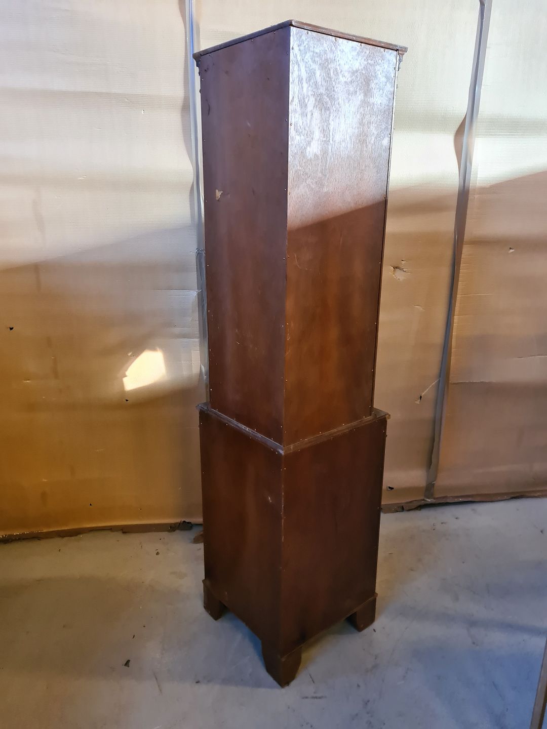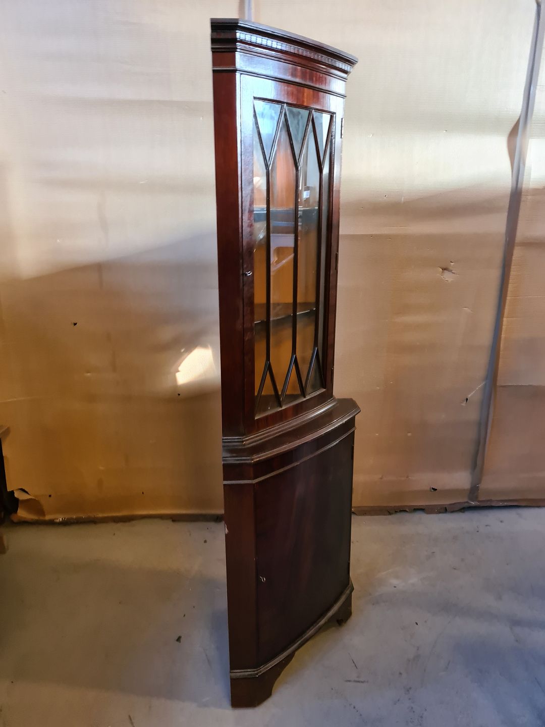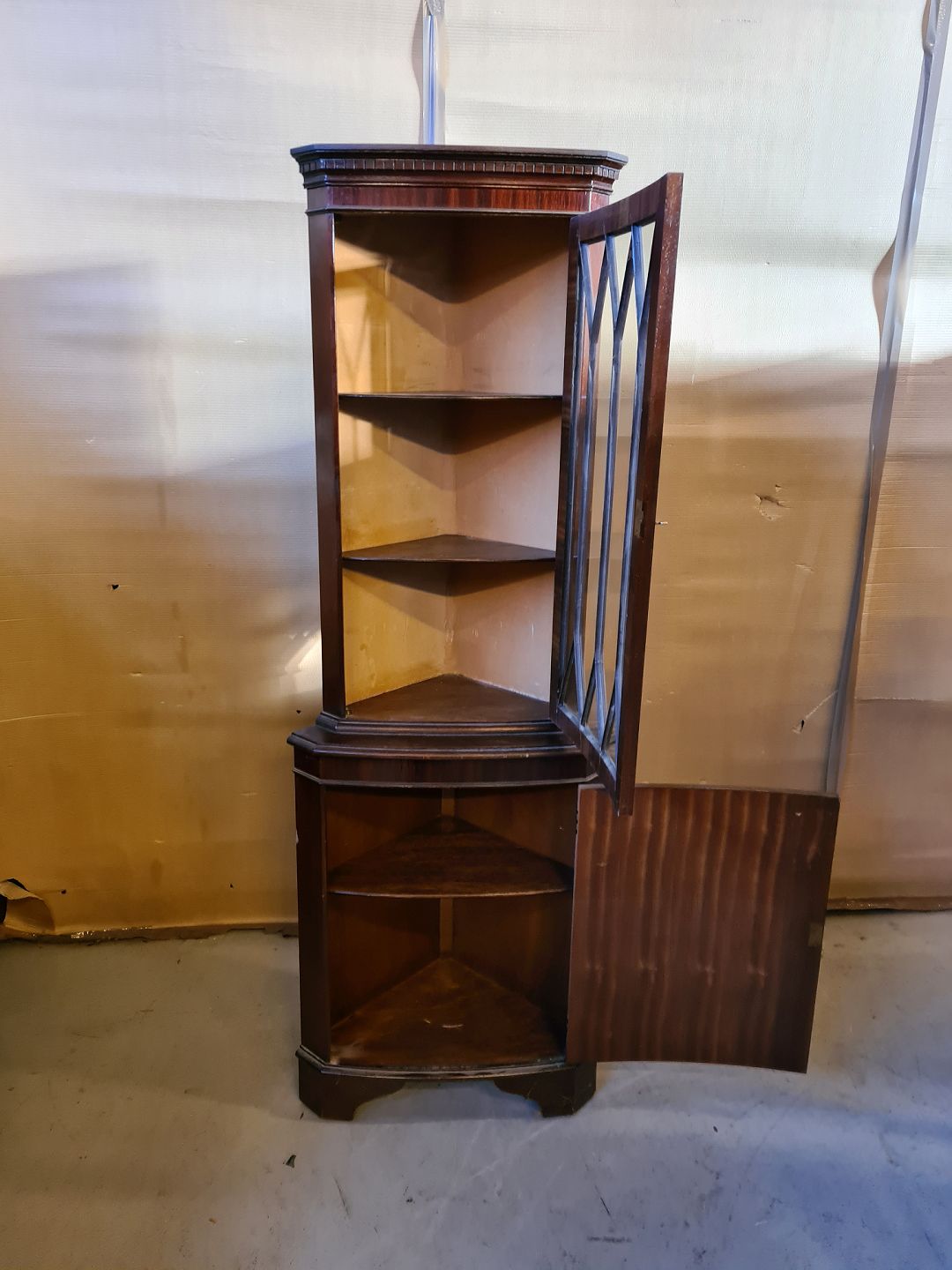 Hjørneskab i fineret mahogni, fra 1980erne.