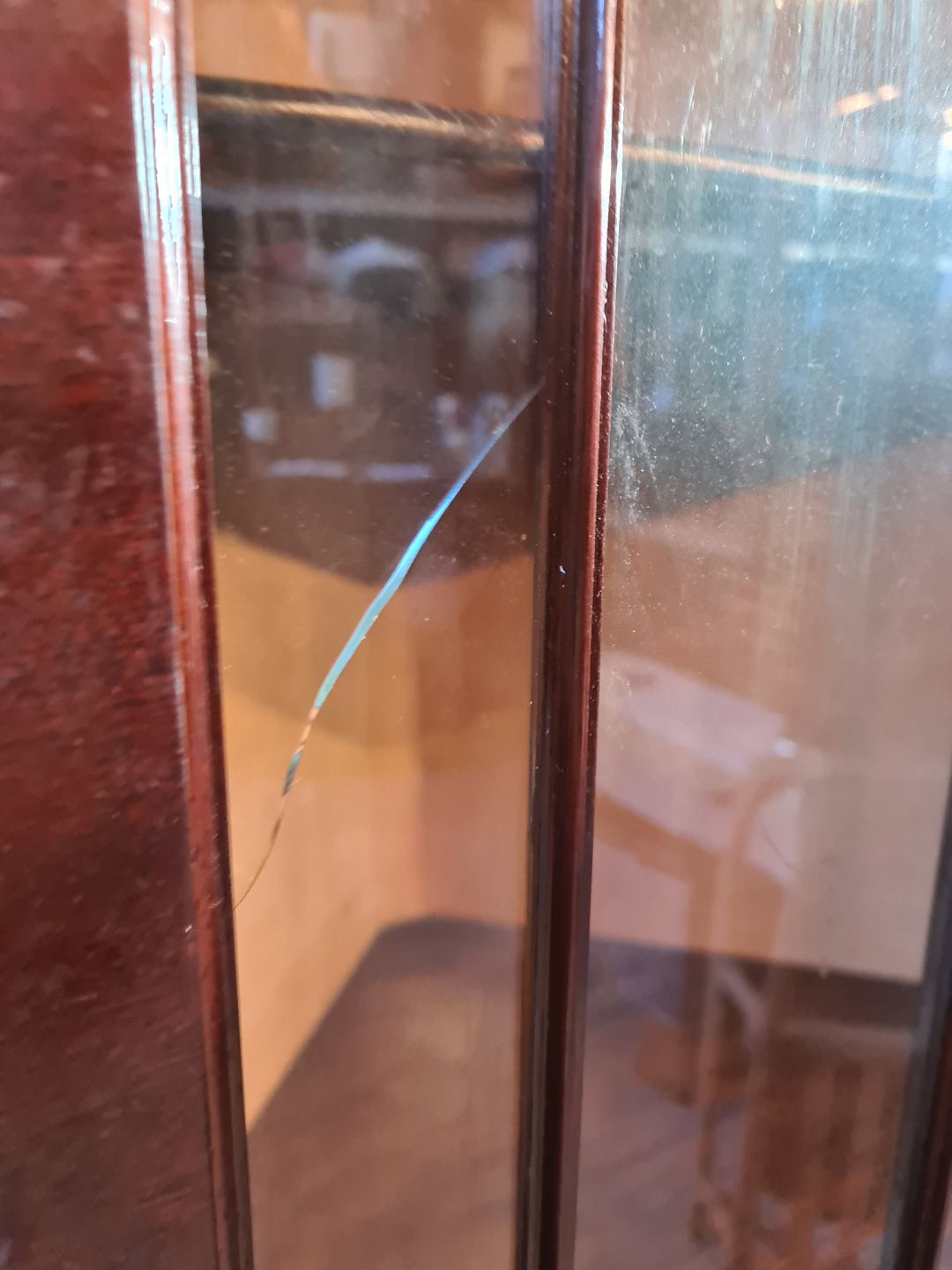 Det har brugsspor og en revne i glaslågen.