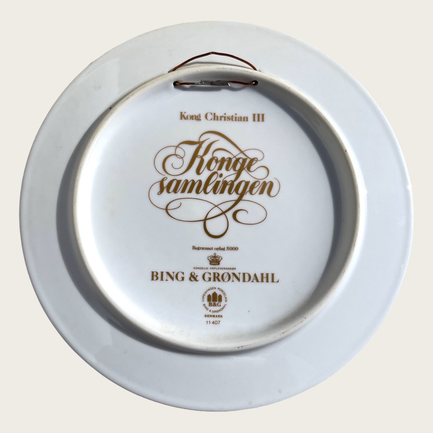 Bing & Grøndahl, Kongesamlingen, Konge platte, Kong Christian III; 23cm i diameter, Udgivet i 1984, Design Ivan Falkenberg *Perfekt stand*