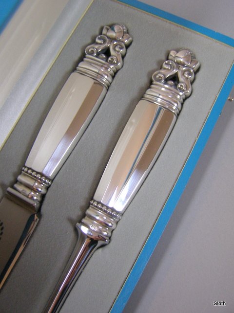 Georg Jensen 925 S. Konge Forskærersæt Kniv L: 35 cm. Gaffel L: 31 cm.