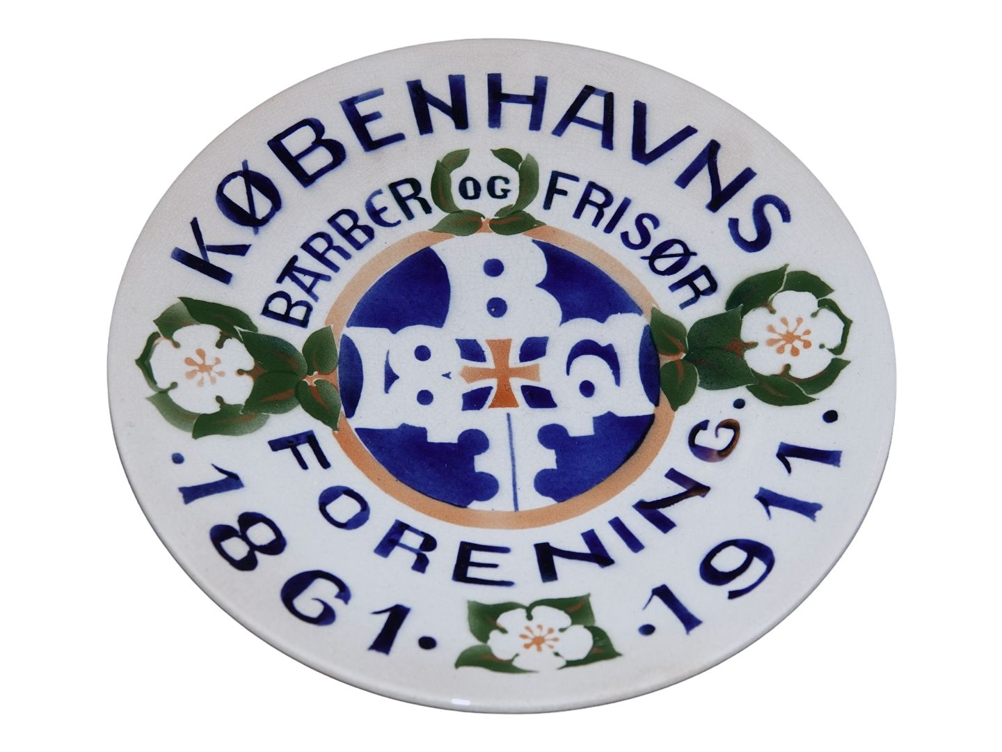 Aluminia platte Barber og frisør Københavns Forening 1861-1911.