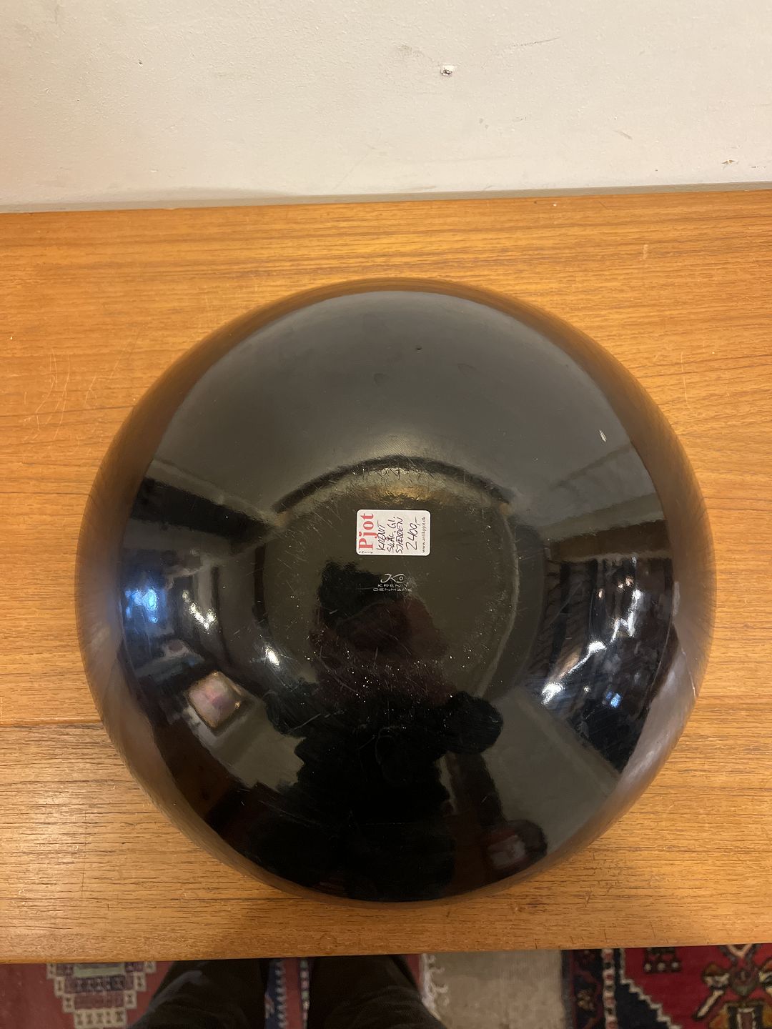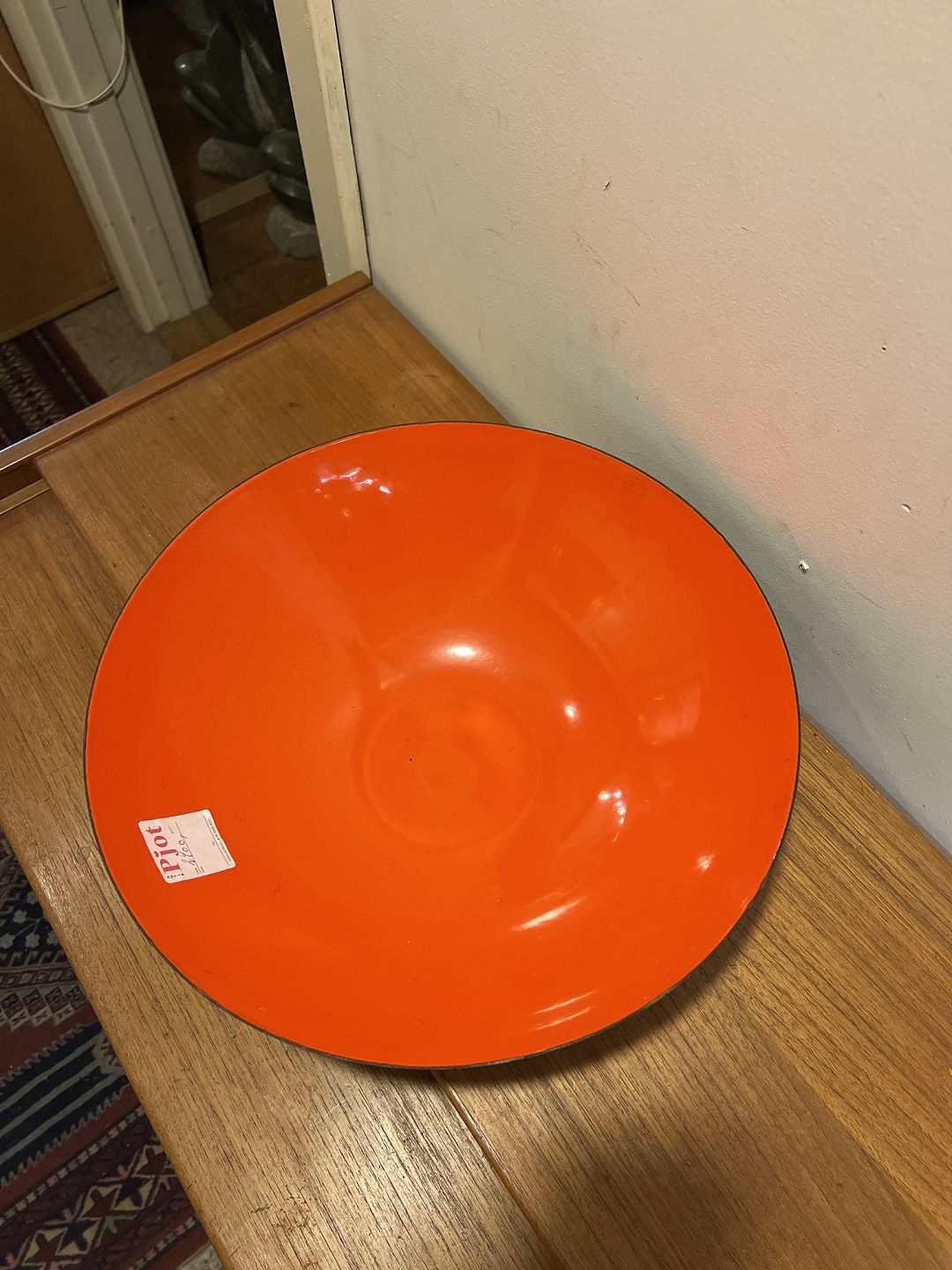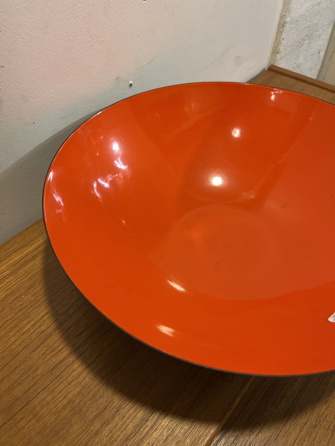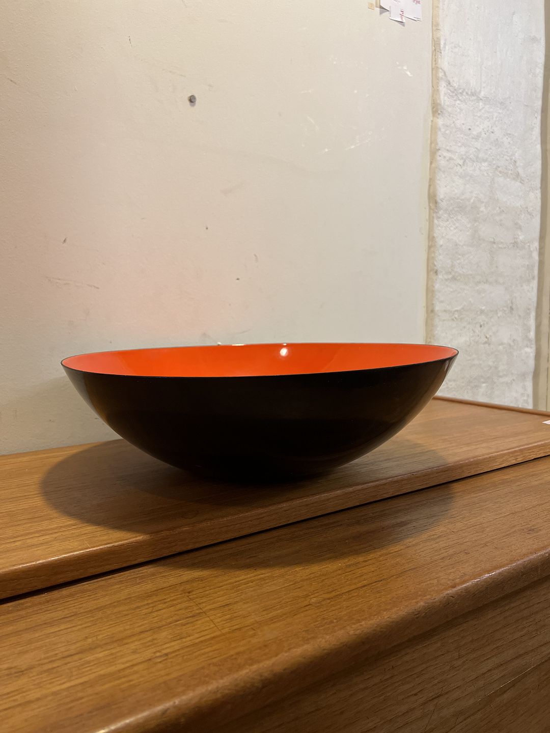 Krenit skål i sort/orange-rød emalje - Sjælden stor model.