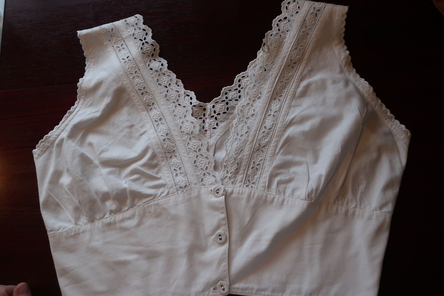 Good old blouse/top without sleeves and with buttons made of fabric