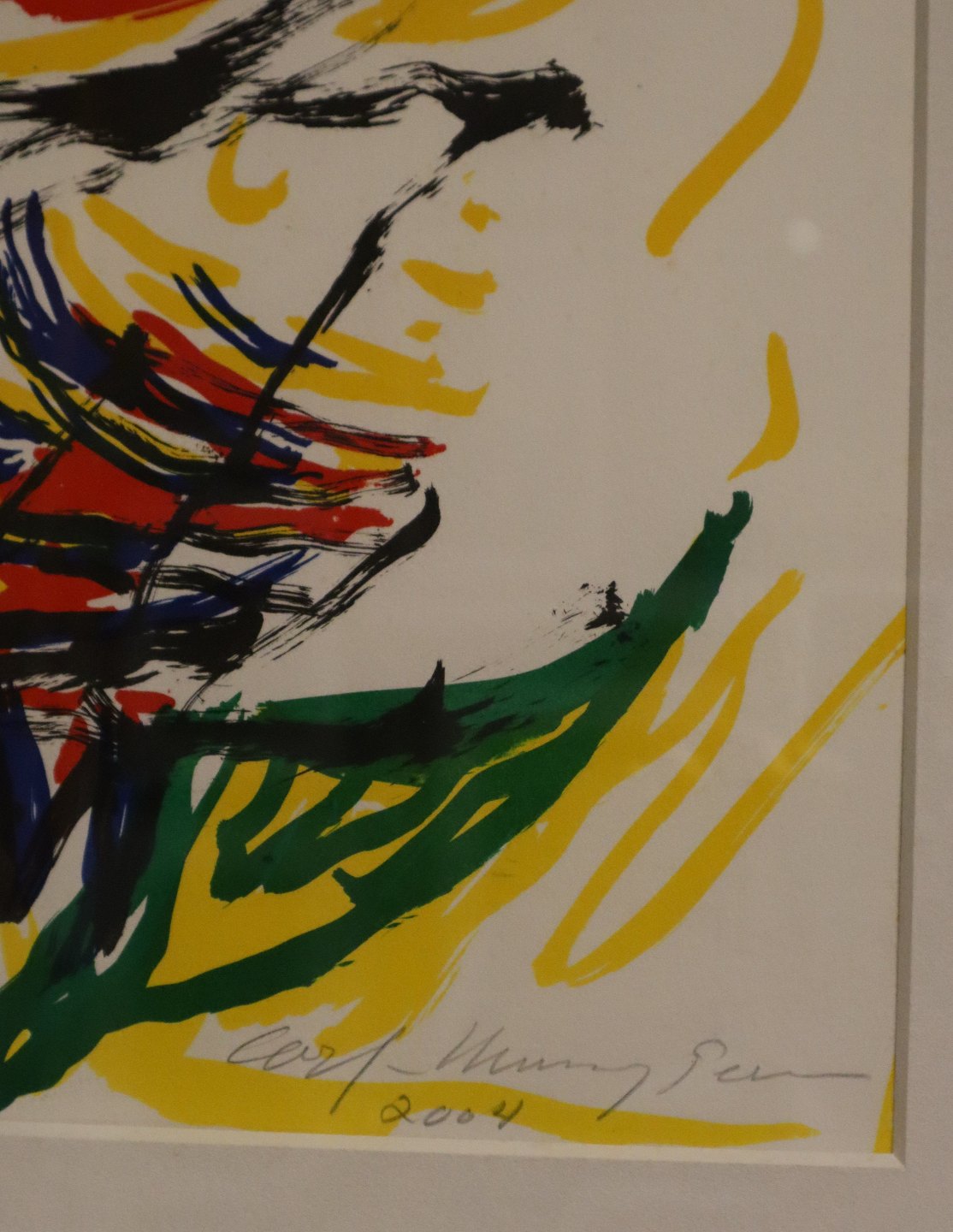 "Phoenix" Color lithography limited #120 of #250 Signed Carl-Henning Pedersen 2004 Ca 87 x 67 cm included the silverframe