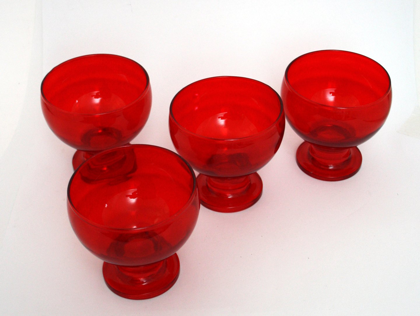 Flotte røde ballonglas med klar bund. Højde 10 cm. Øverste diameter 10 cm. Pris: 4 stk. 800 kr. sælges samlet.