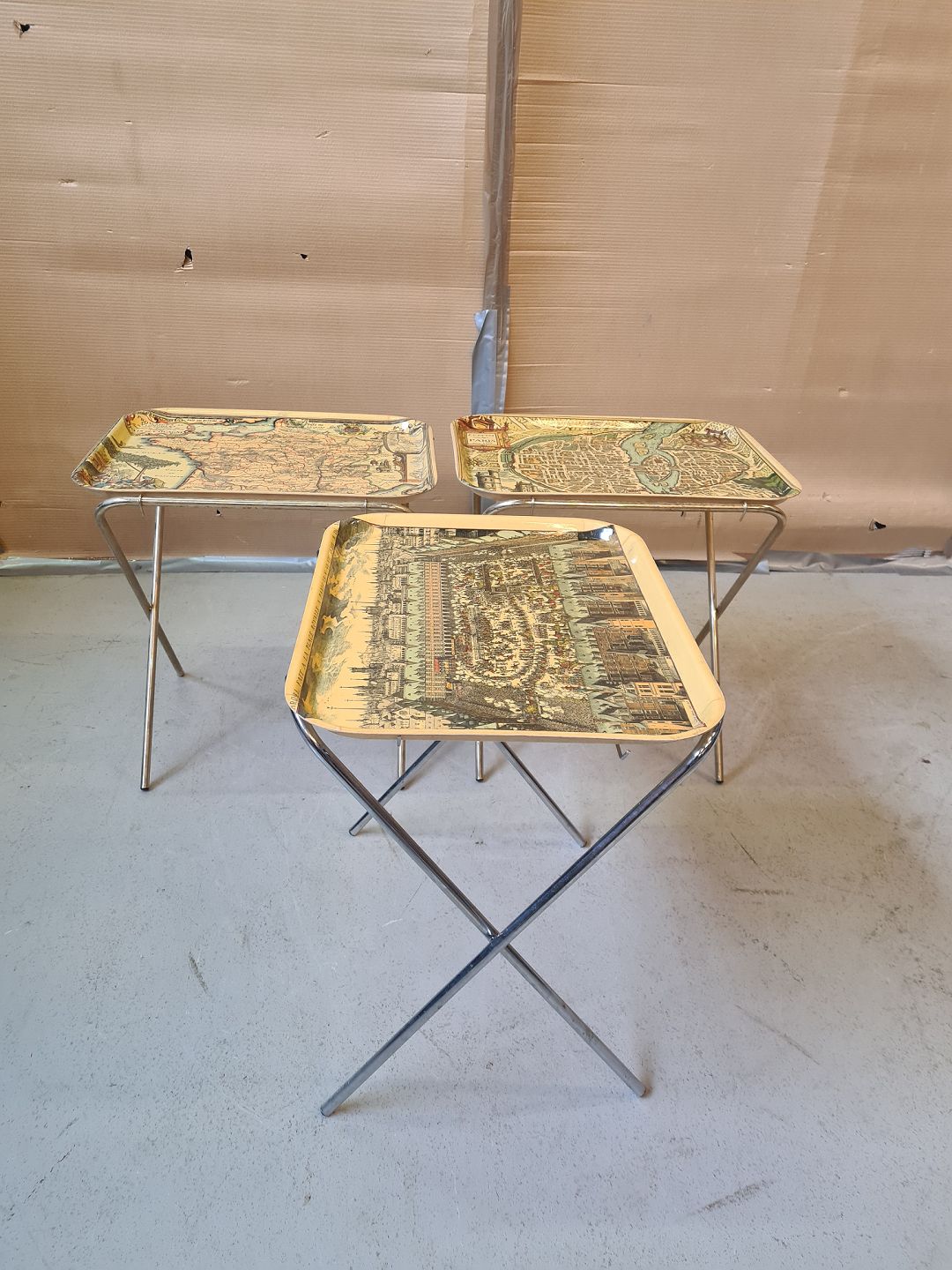 3 Små bakkeborde i metal og plast, fra 1980-1990erne.