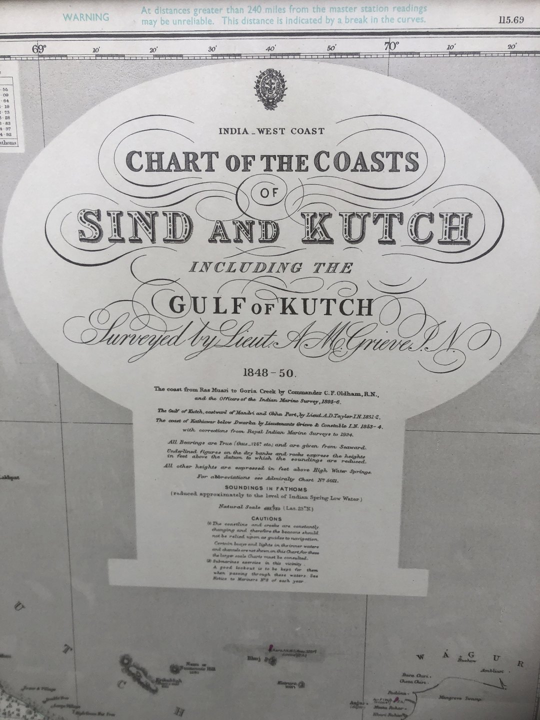 Dekorativt Indrammet søkort, Vest Indiske kyst 1848-50, New edition 26 April 1929. Mål med ramme 88x74 cm