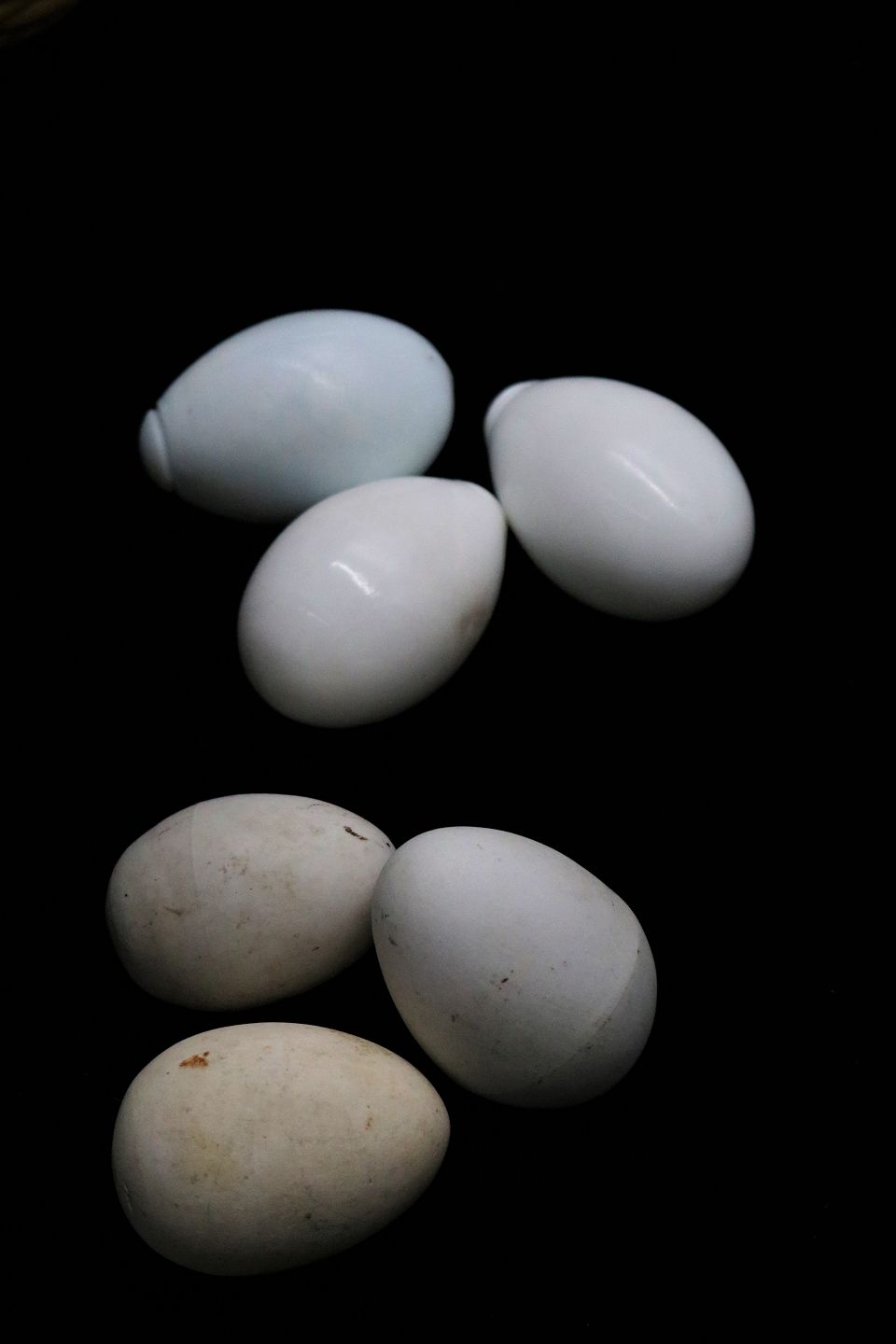 Dekorative , gamle snyde æg i porcelæn / biskuit med fin patina.