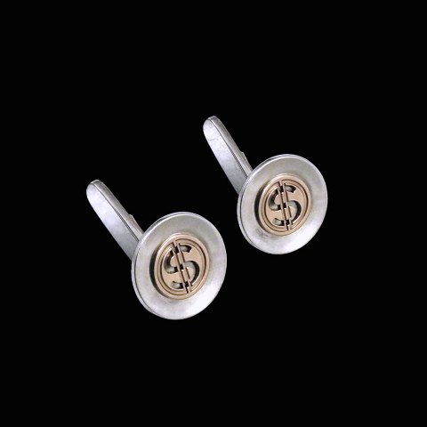A. Michelsen. Manchetknapper i sterlingsølv 14k guld.