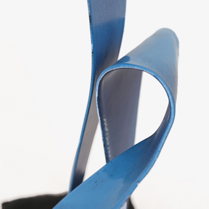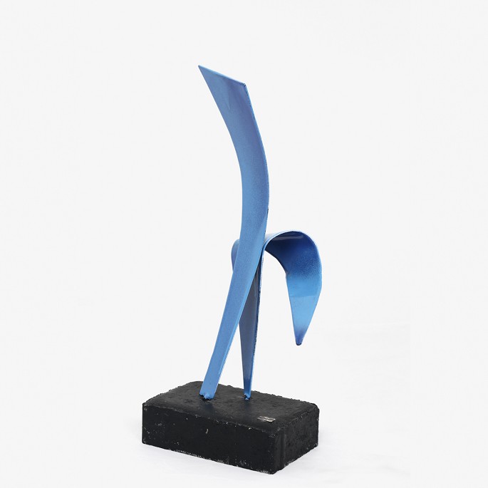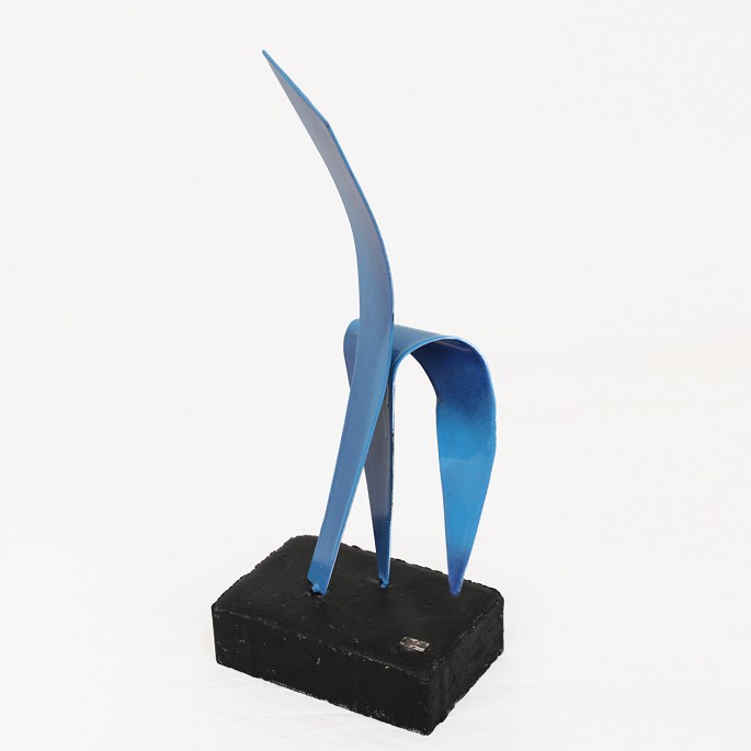 Unik blå emaljeskulptur på sortmalet fod af sten. Signeret. H. 50 cm.