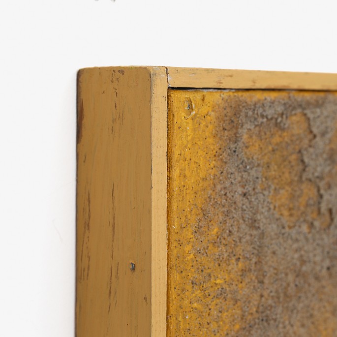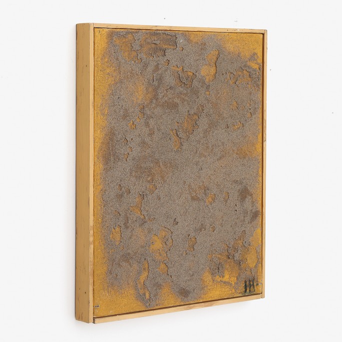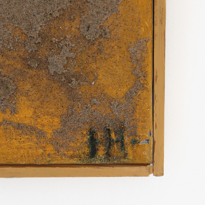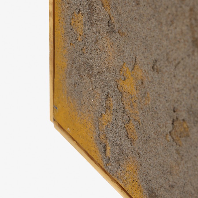 Mixed media komposition på kanvas med oliemaling og sand med original træramme.