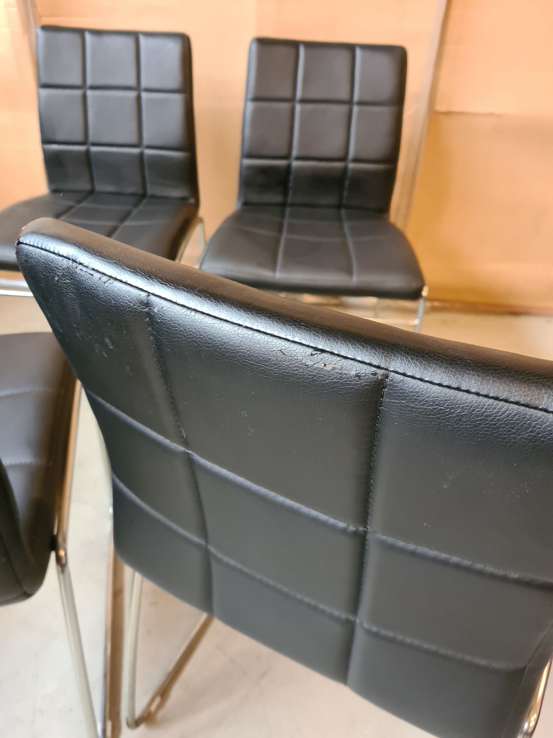 4 Stole i metal med kunstlæder, af nyere dato.
