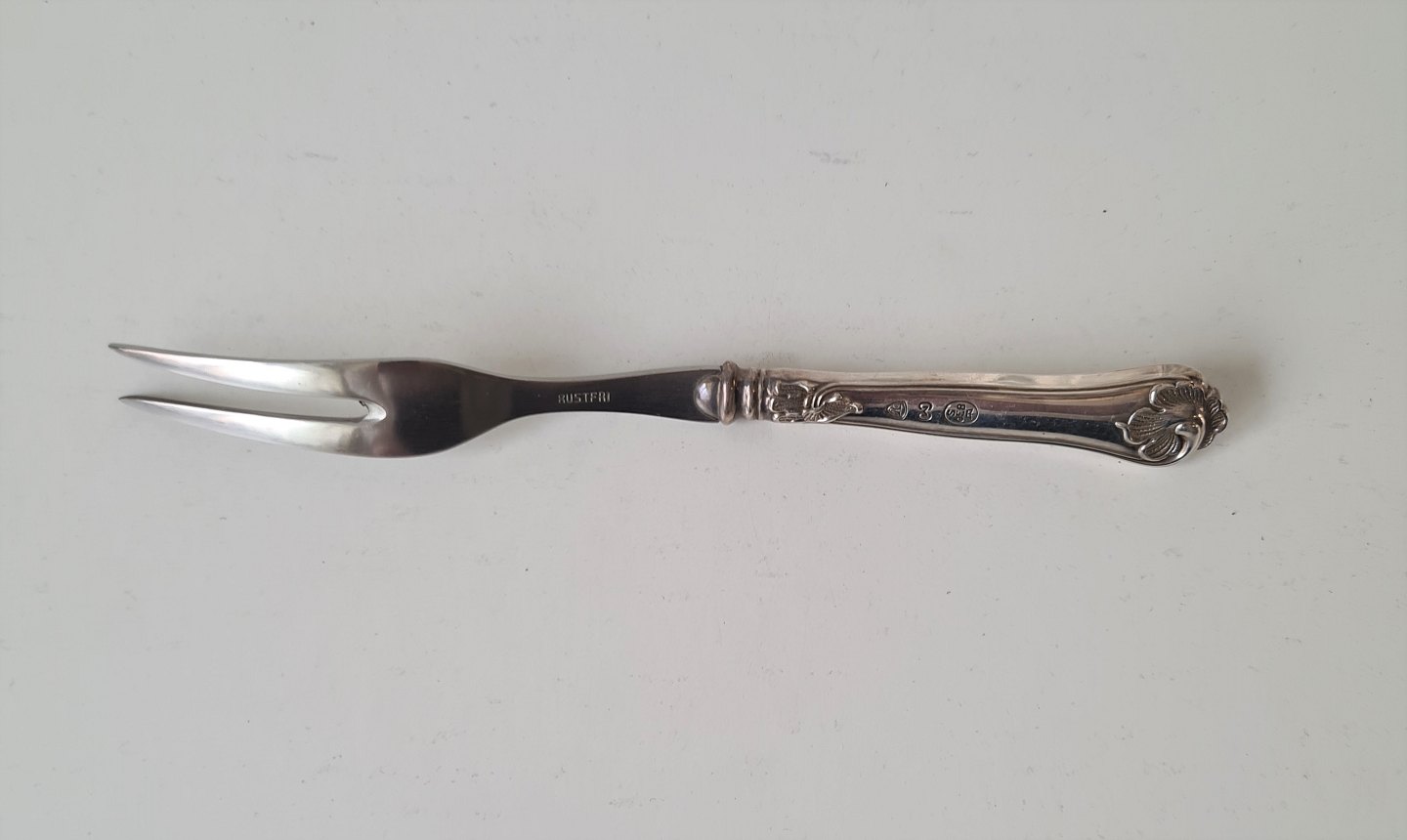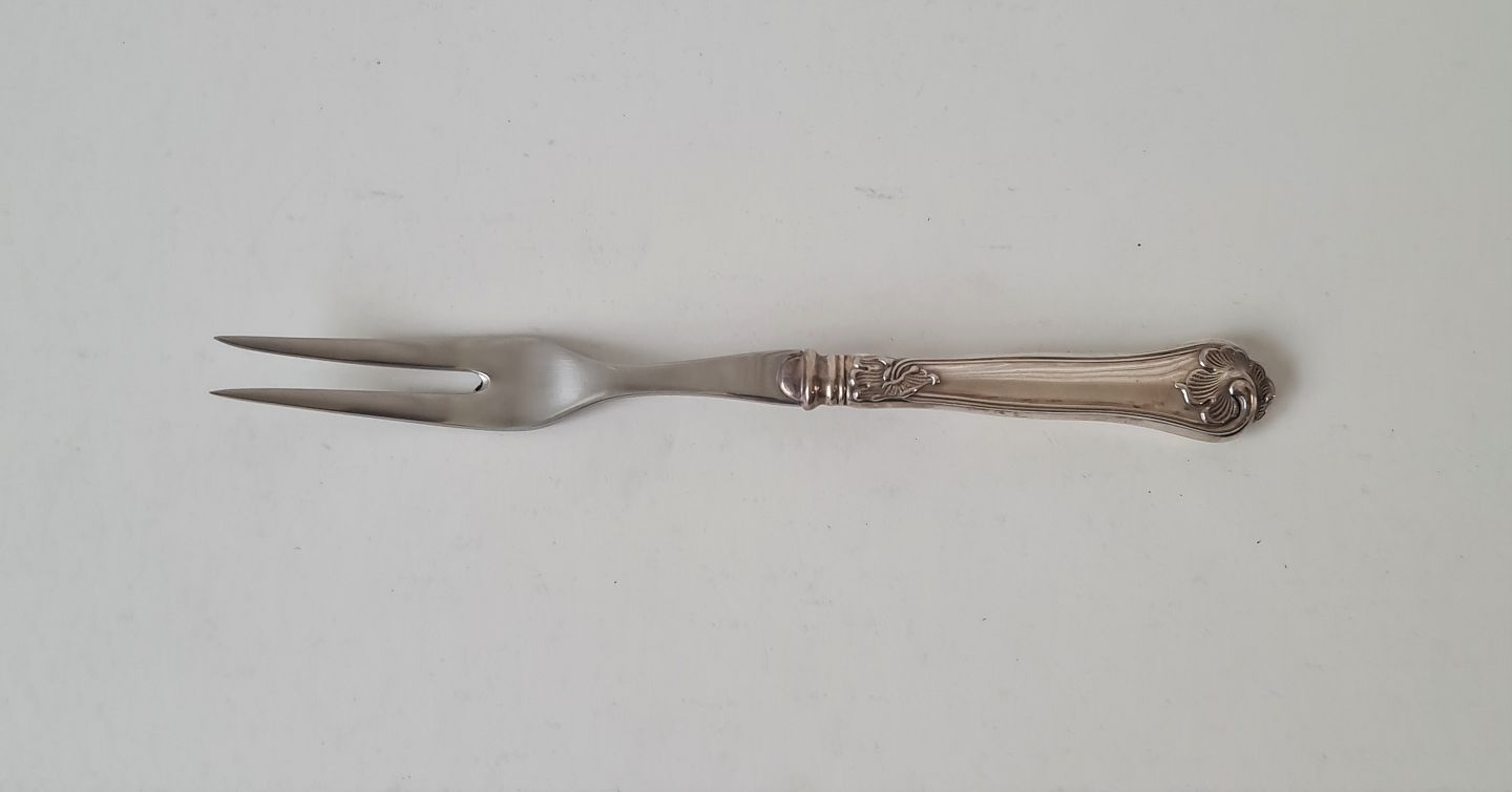 Saksisk pålægsgaffel i sølv og stål