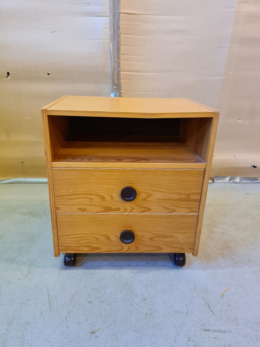 Lille møbel på hjul i fineret fyrretræ, fra 1980erne.