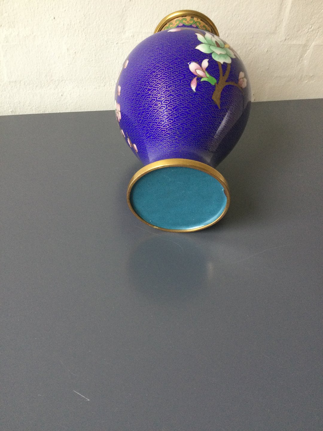 Kobolt blå fond med fugle, floral og blomstrende træ.