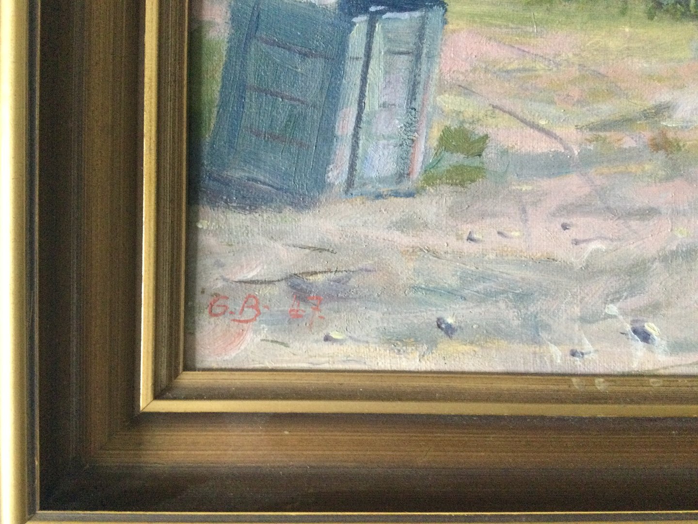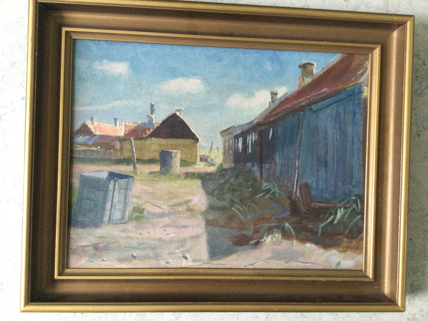 Maleri af Gunner Bundgaard - Fiskerhuse i Skagen Vesterby 1947.