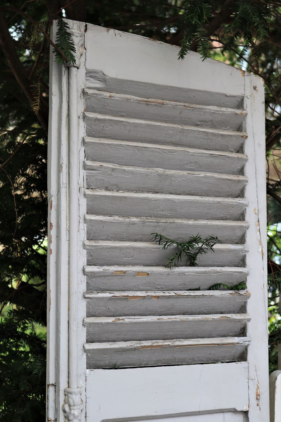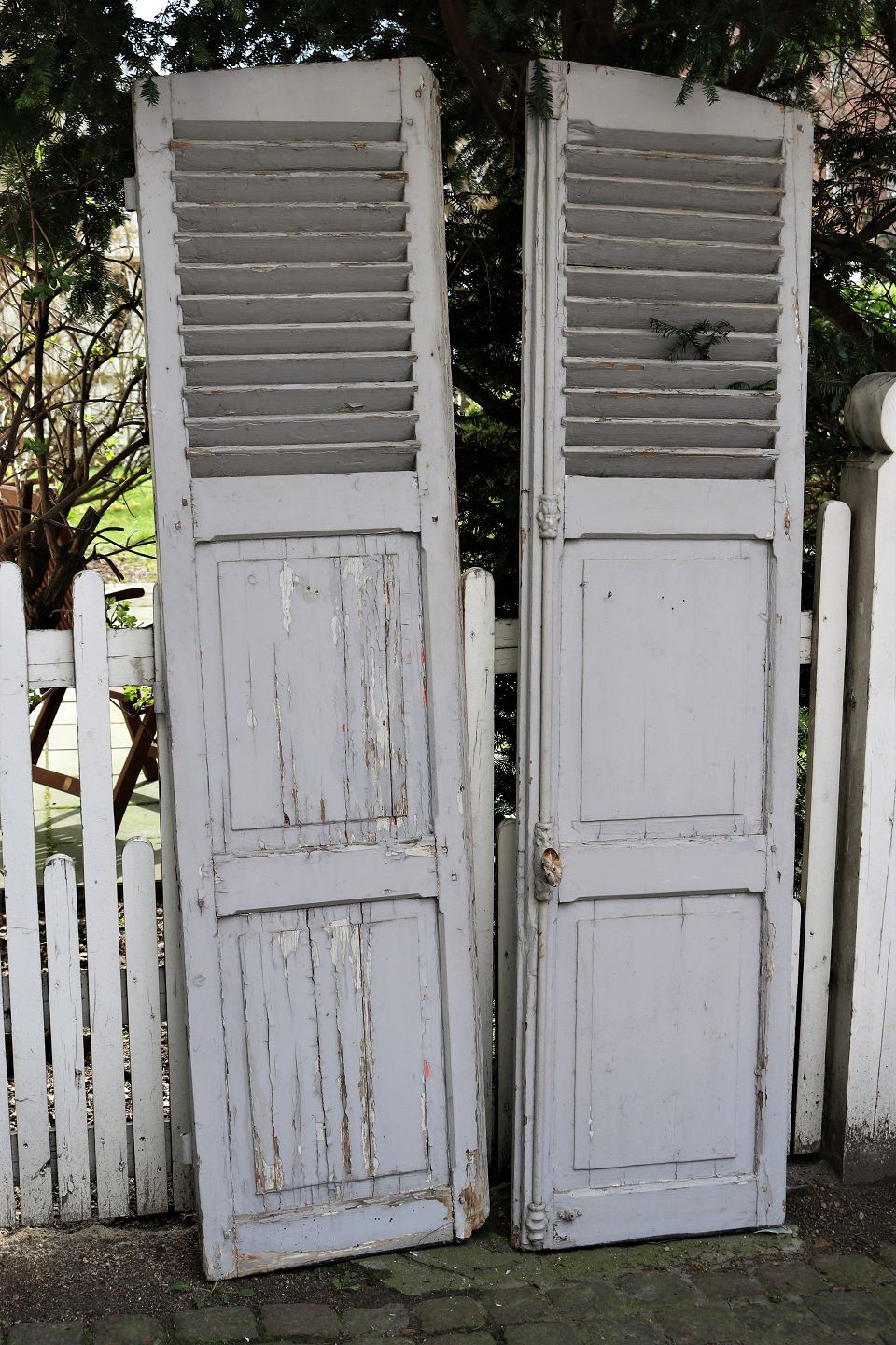 Et par dekorative gamle franske skodder med lysegrå farve og god patina...