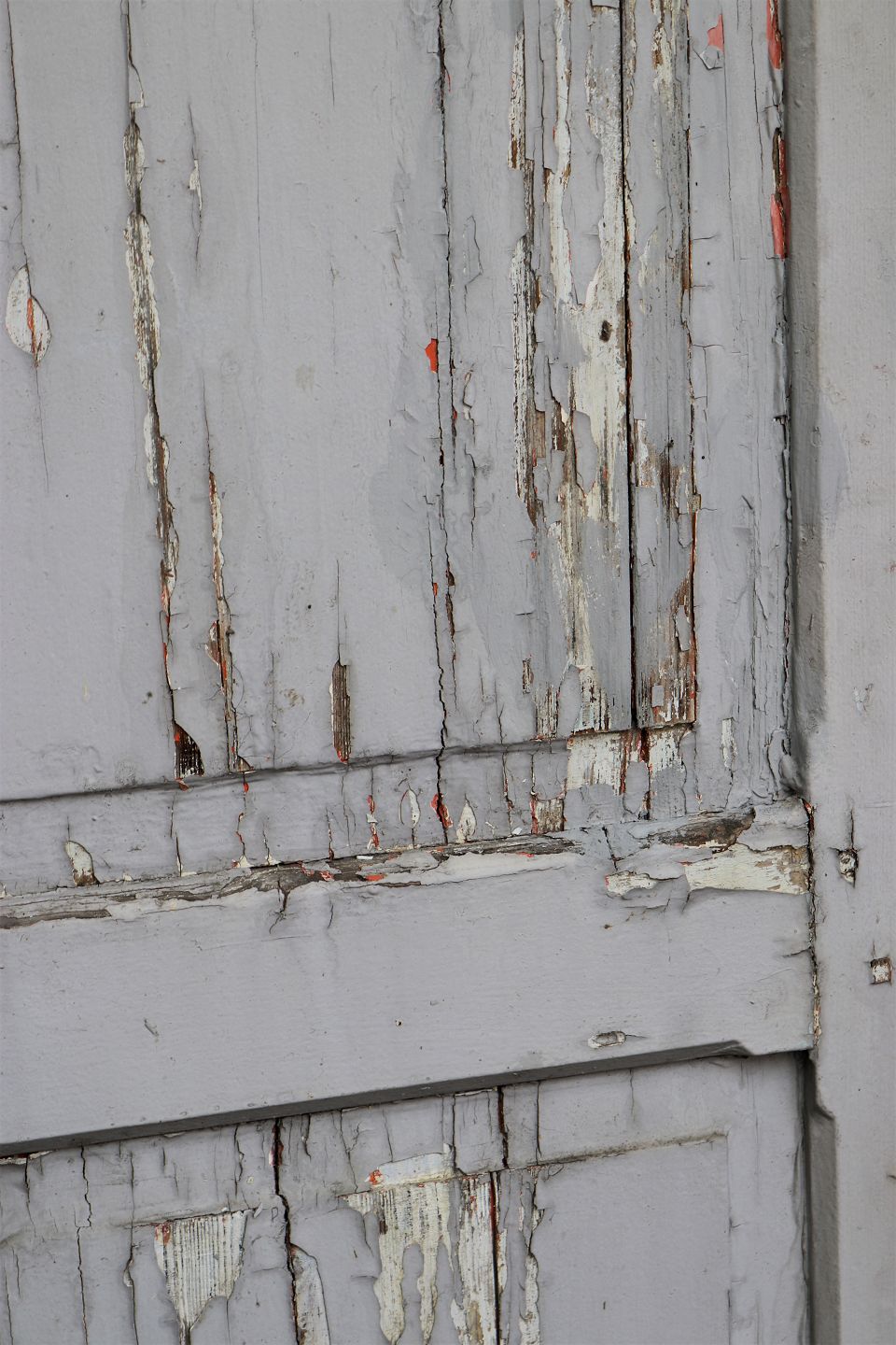 Et par dekorative gamle franske skodder med lysegrå farve og god patina. Mål: Højde:202cm. Brede per. fag: 50cm.