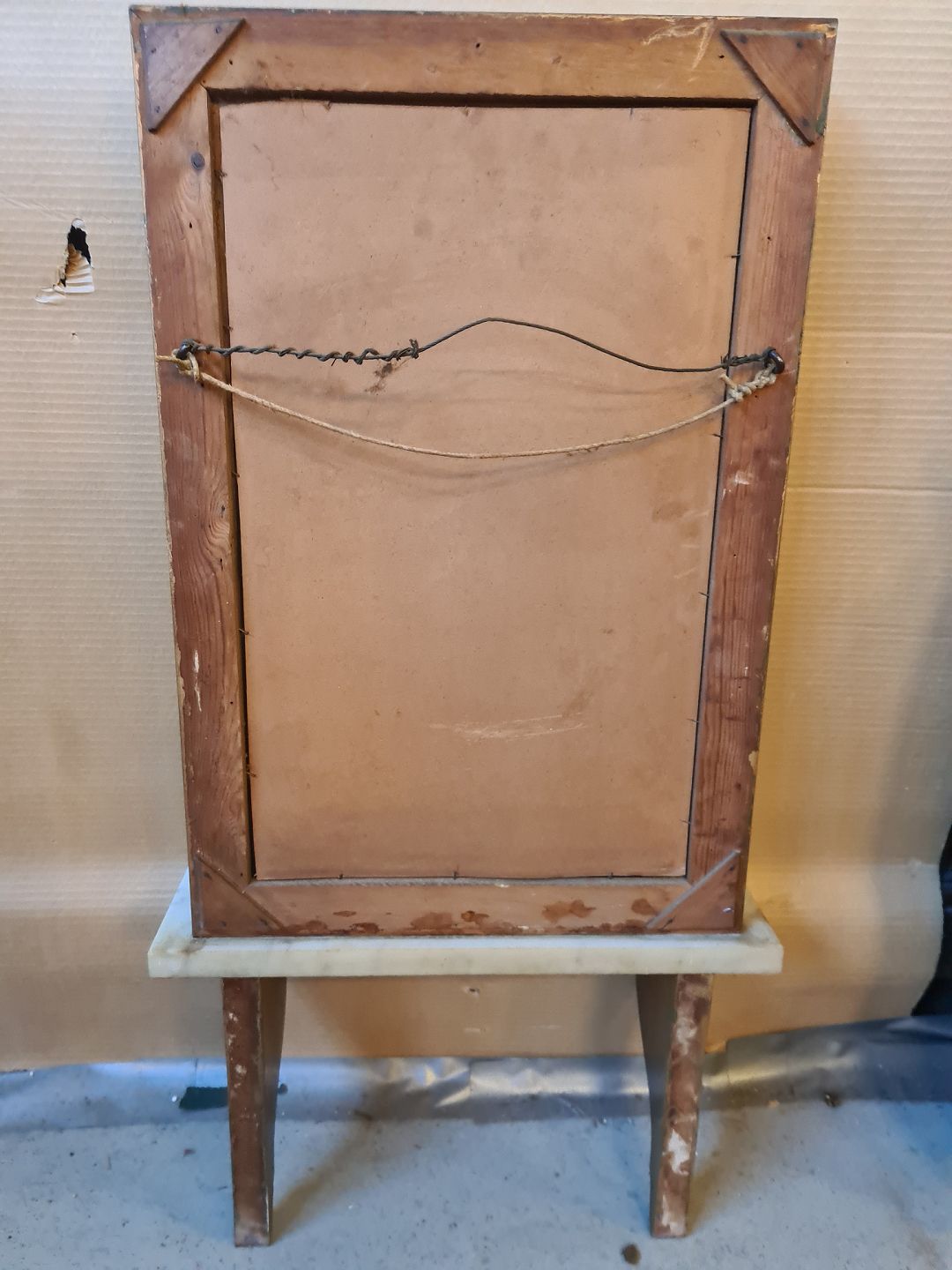 Guldmalet spejl med marmor hylde, fra 1920erne.