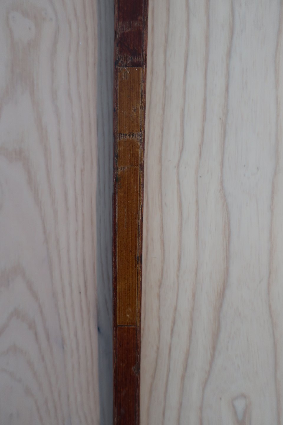 Smukt udført i træ med nøjagtig bemaling, som om det er intarsia, og meget dekorativt håndtag. Vi skal tæt på for at se, at det ikke er intarsia