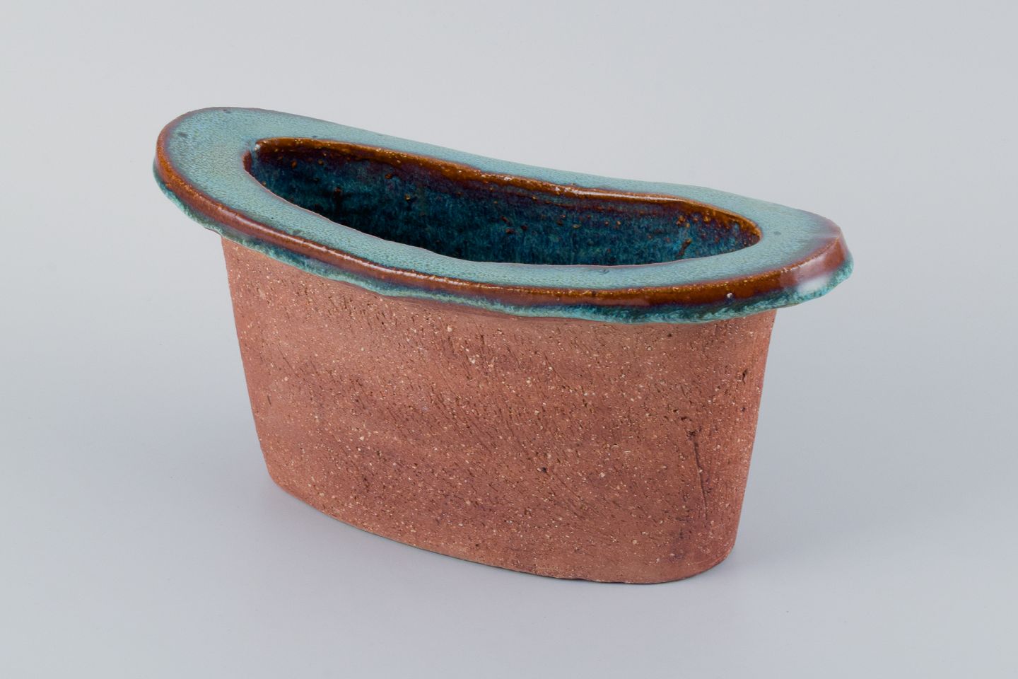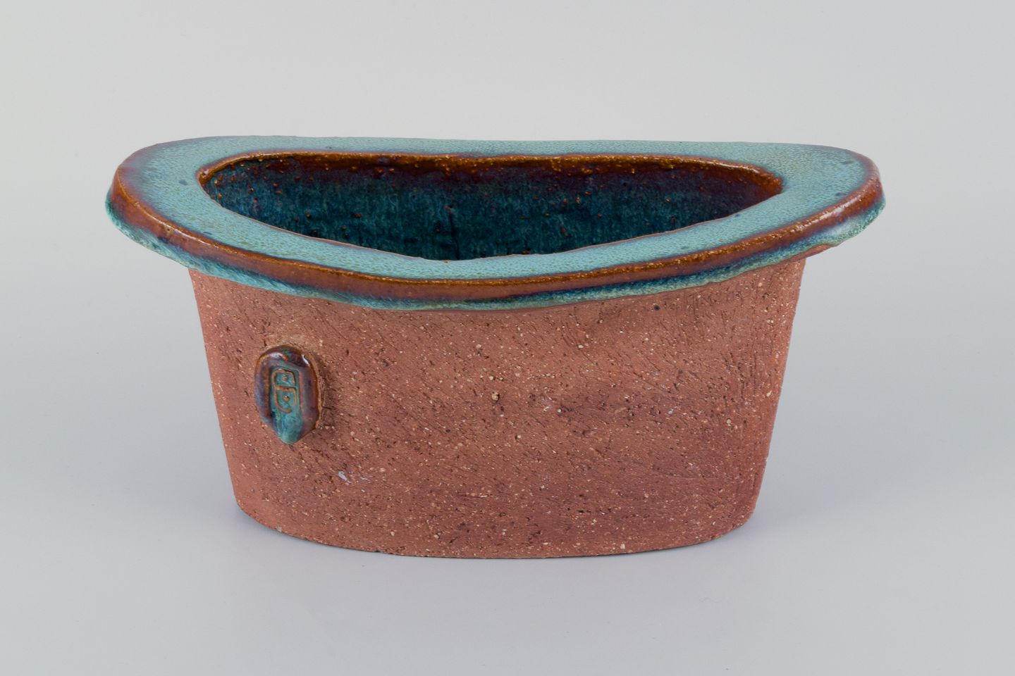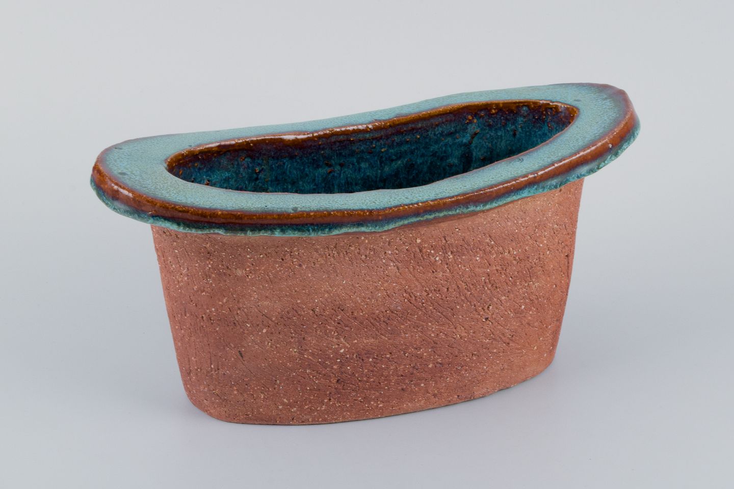 Curt Addin, stor skål i chamotte-ler. Indvendigt med turkis glasur.