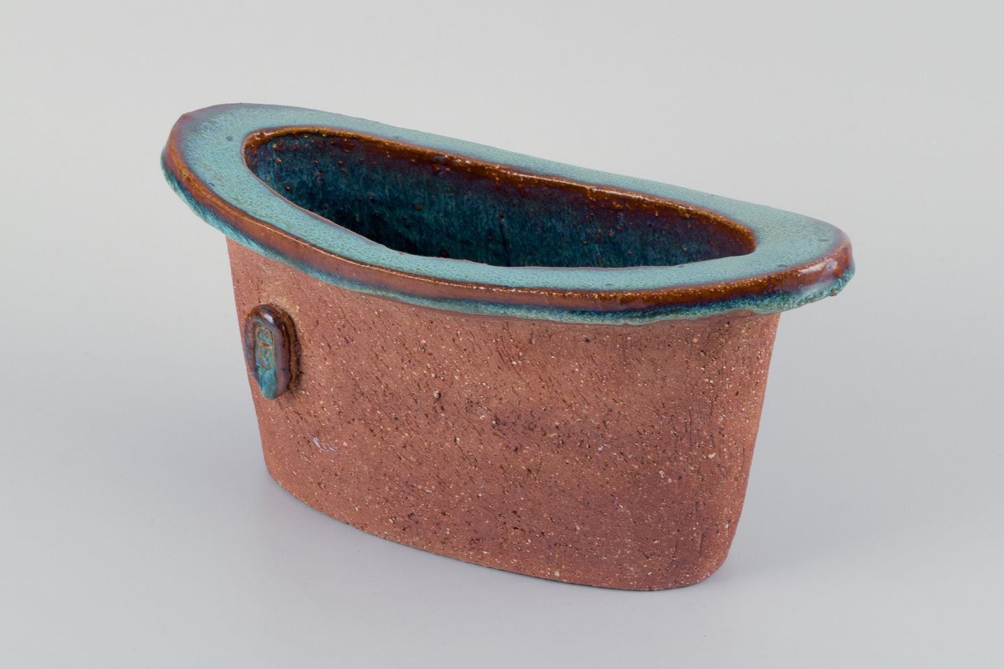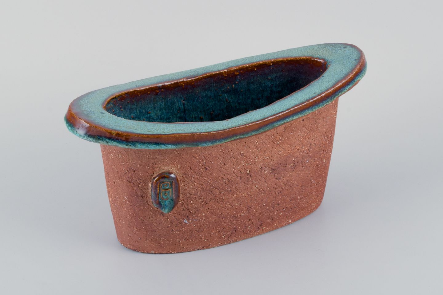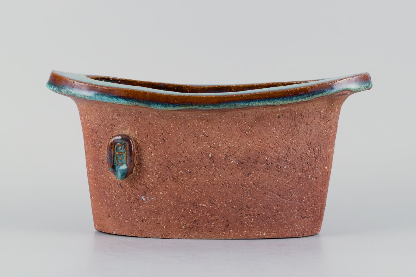 Curt Addin, stor skål i chamotte-ler. Indvendigt med turkis glasur.