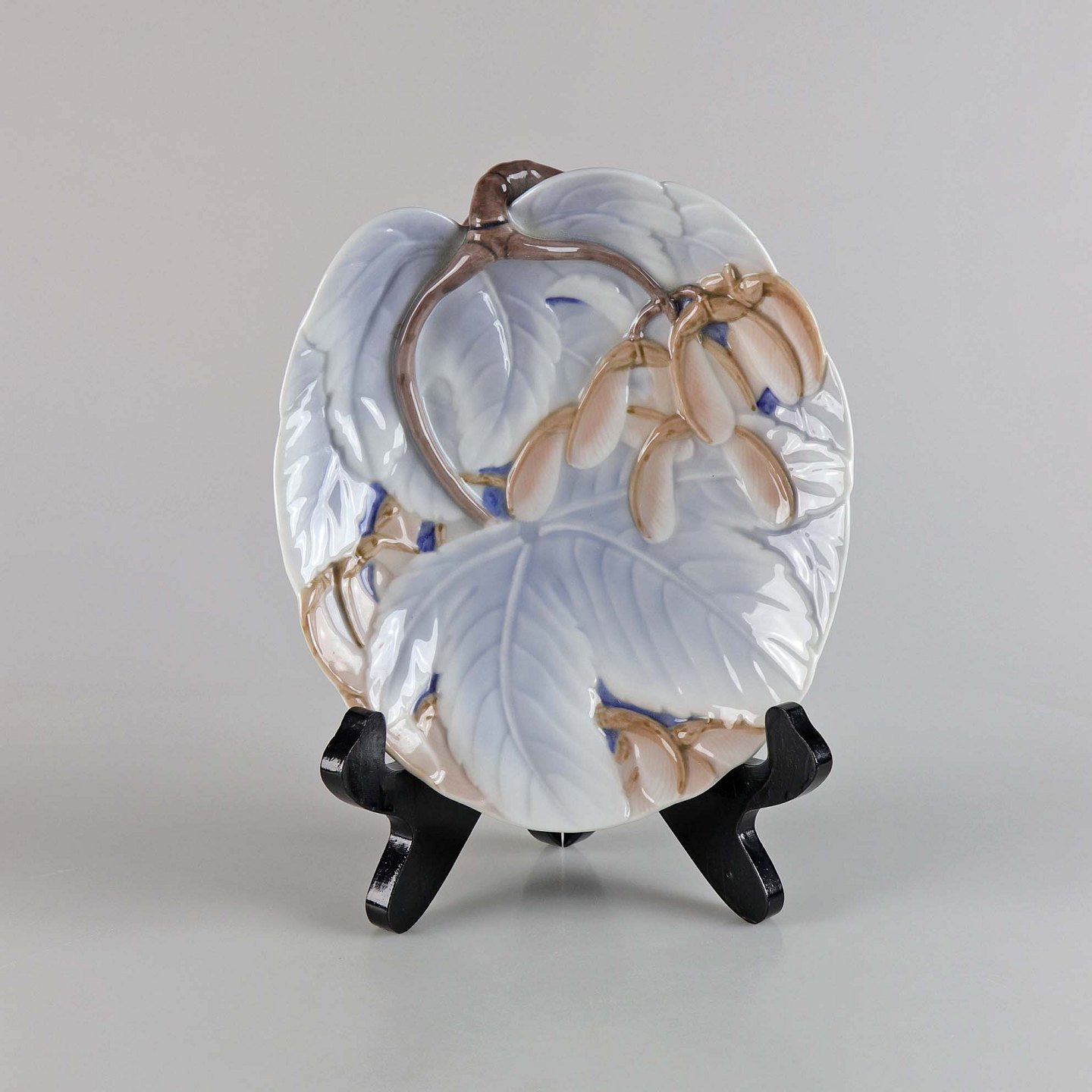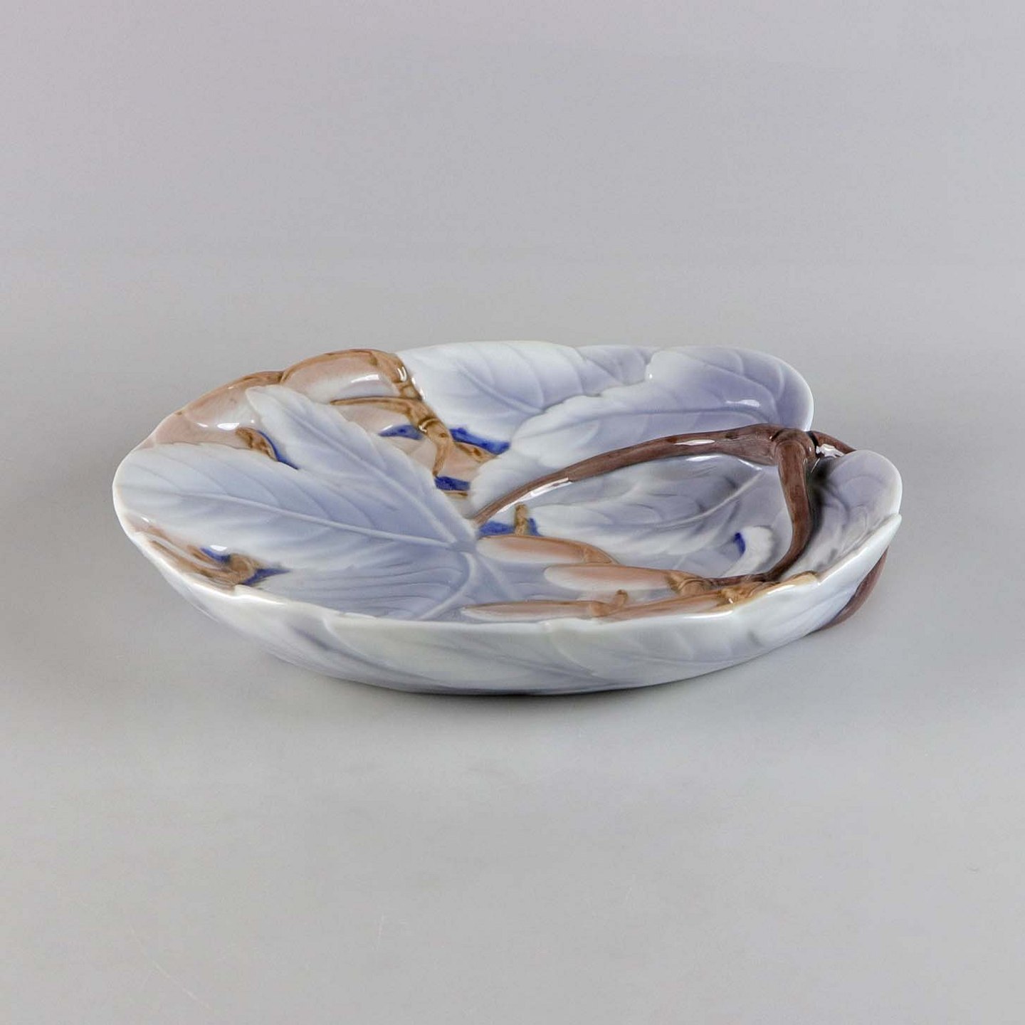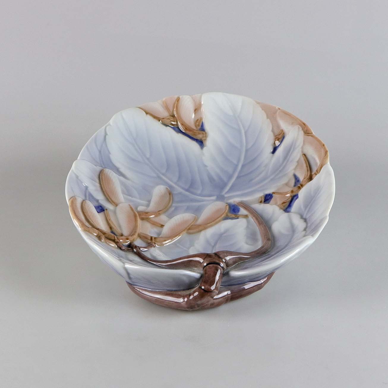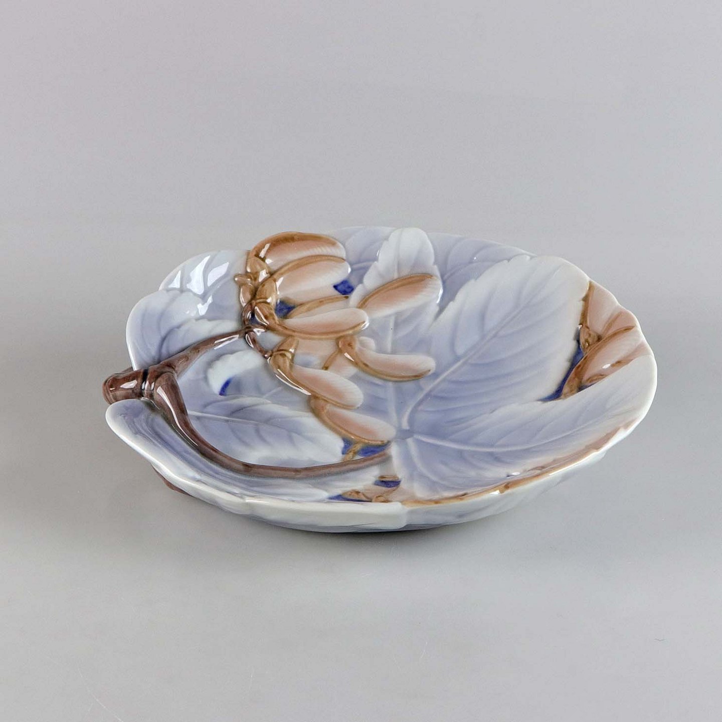 Fad i porcelæn med motiv af ahorn blade og frø no 1113