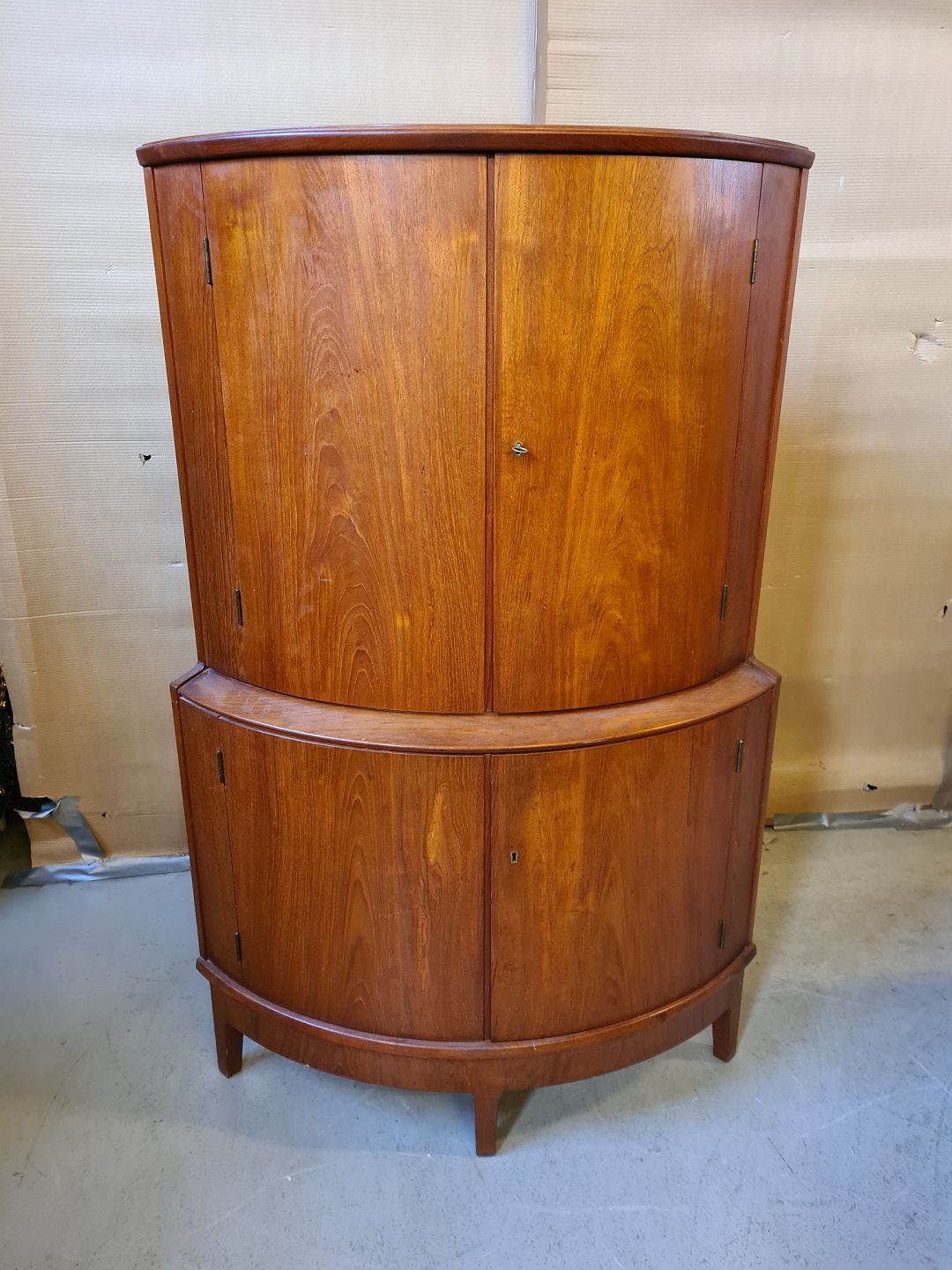 Hjørneskab i fineret teaktræ, fra 1960erne.