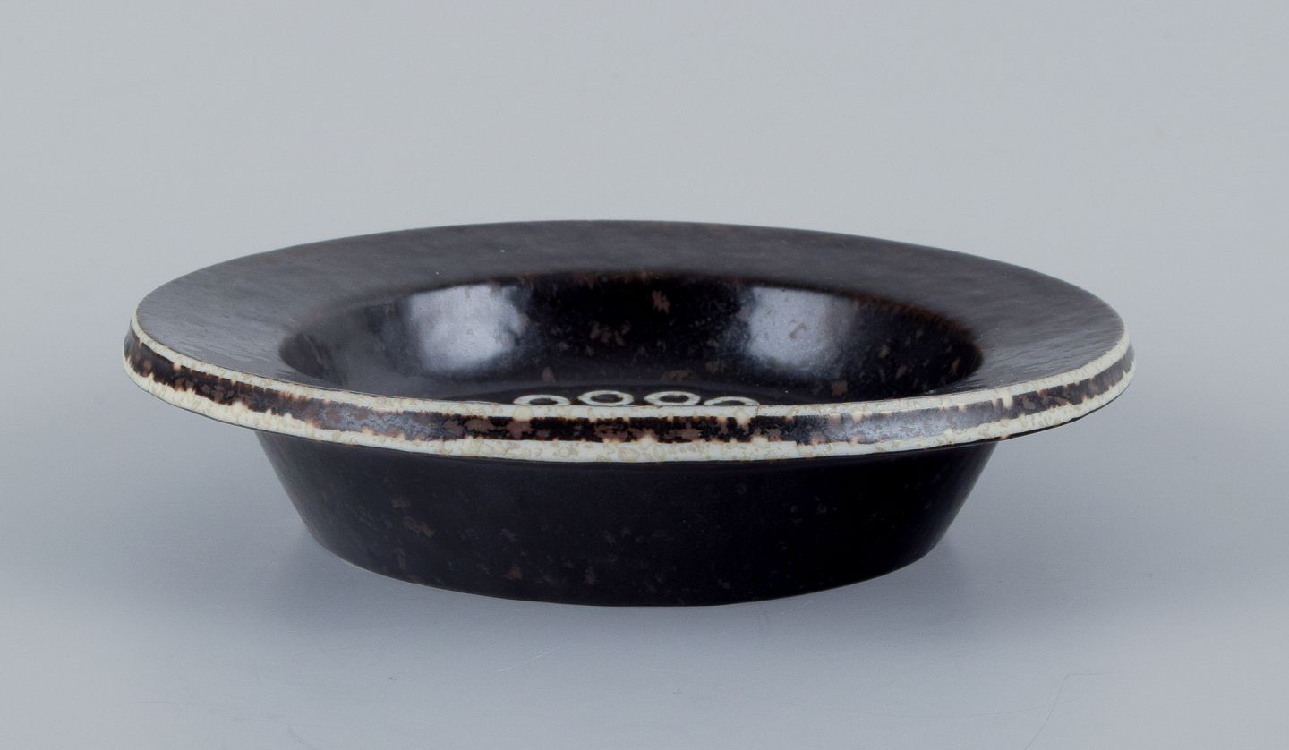 Britt-Louise Sundell (1928-2011) for Gustavsberg Studiohand, Sweden, ceramic bowl in dark brown and sand-colored glaze.