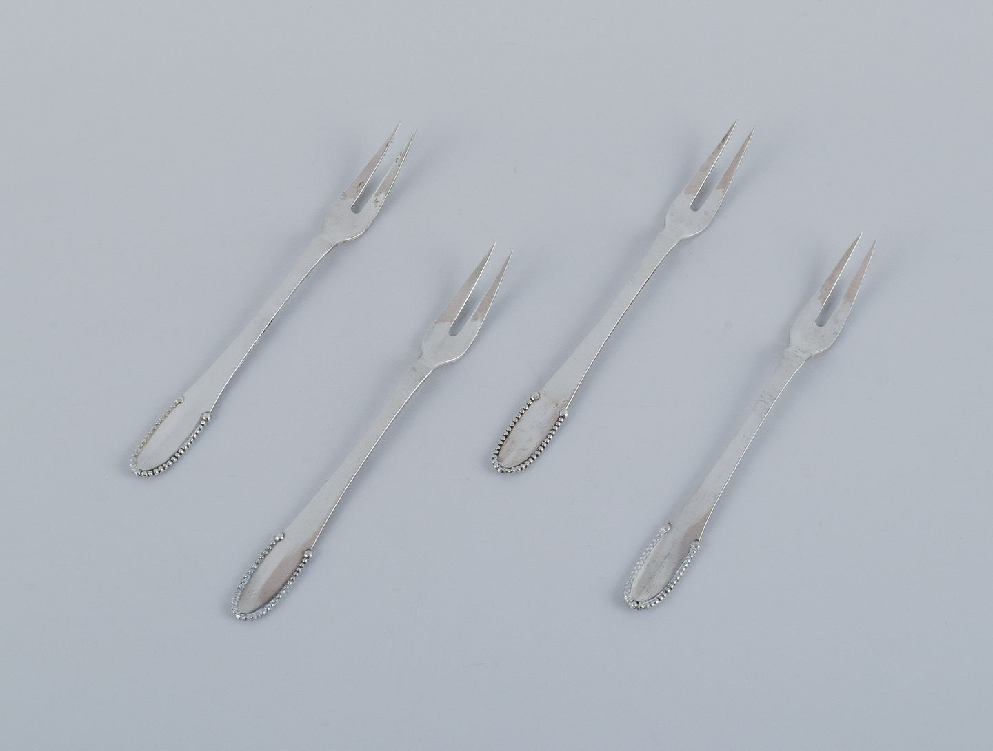 Four cold meat forks in 830 silver.