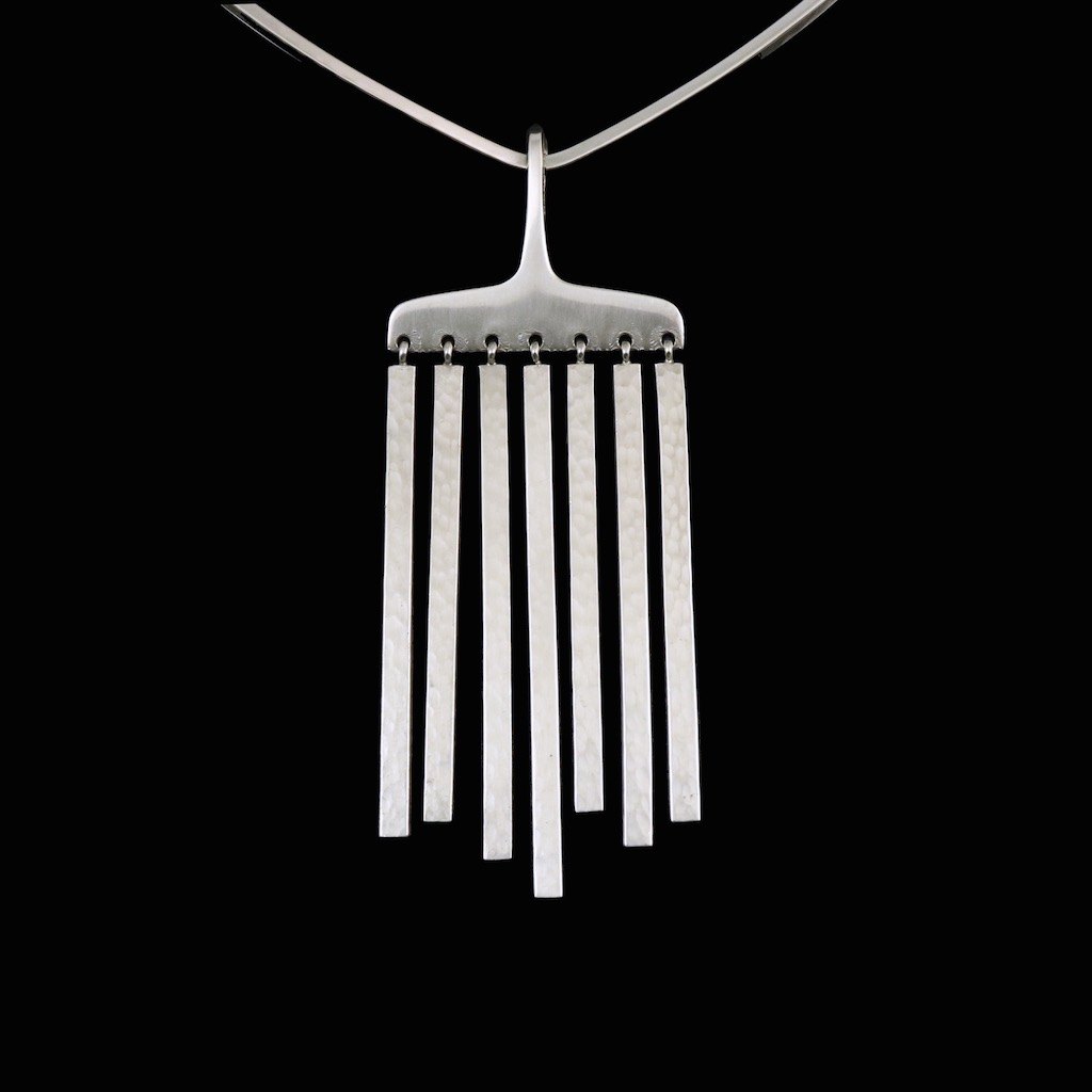 Hans Hansen. Halsring i sterling sølv med hammerslået vedhæng - Bent Gabrielsen.