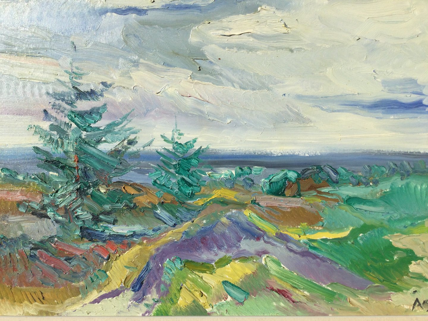 Maleri af Aage Strand - Graner i klitlandskab.