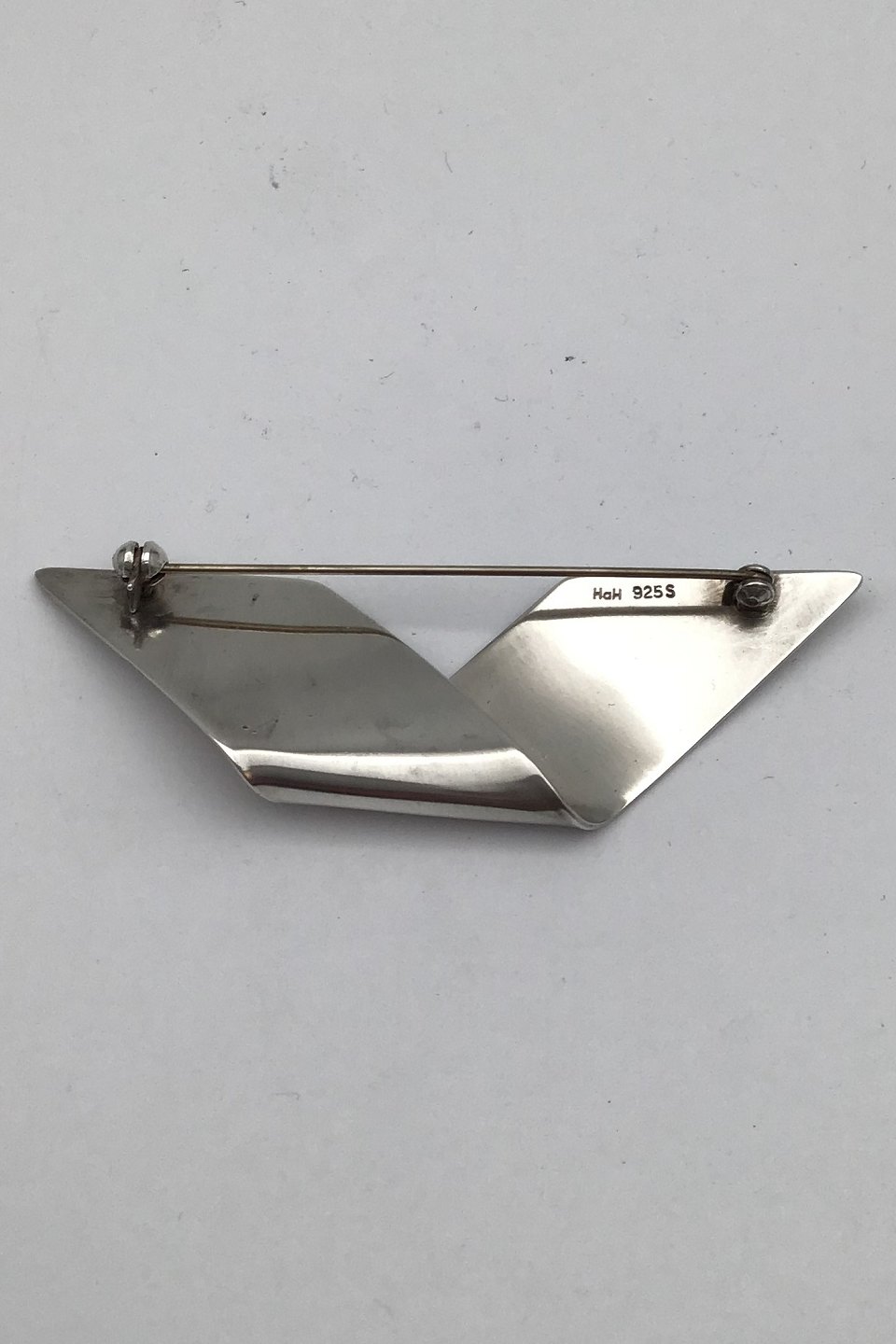 Hans Hansen Sterling Silver Modern Brooch Measures W 7.7 cm x H 2.5 cm (3.03 inch x 0.98 inch) Weight 14 gr (0.50 oz)