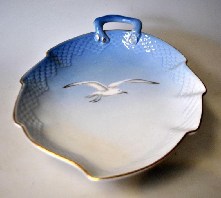 Bing & Grøndahl, måge service, kagefad. 199, bladfad 20. årh. København, Danmark.