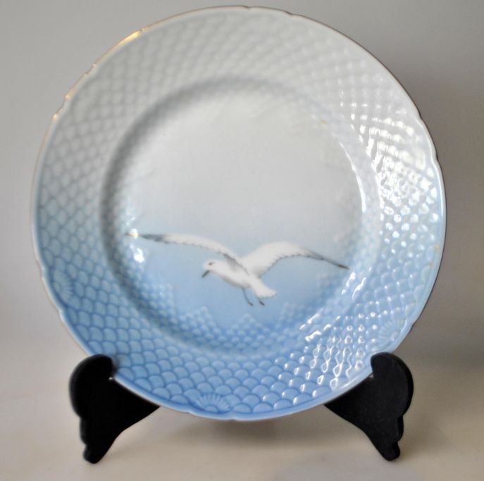 Bing & Grøndahl, seagull, flat plate, no. 26, with gold edge. 20th century Copenhagen, Denmark.