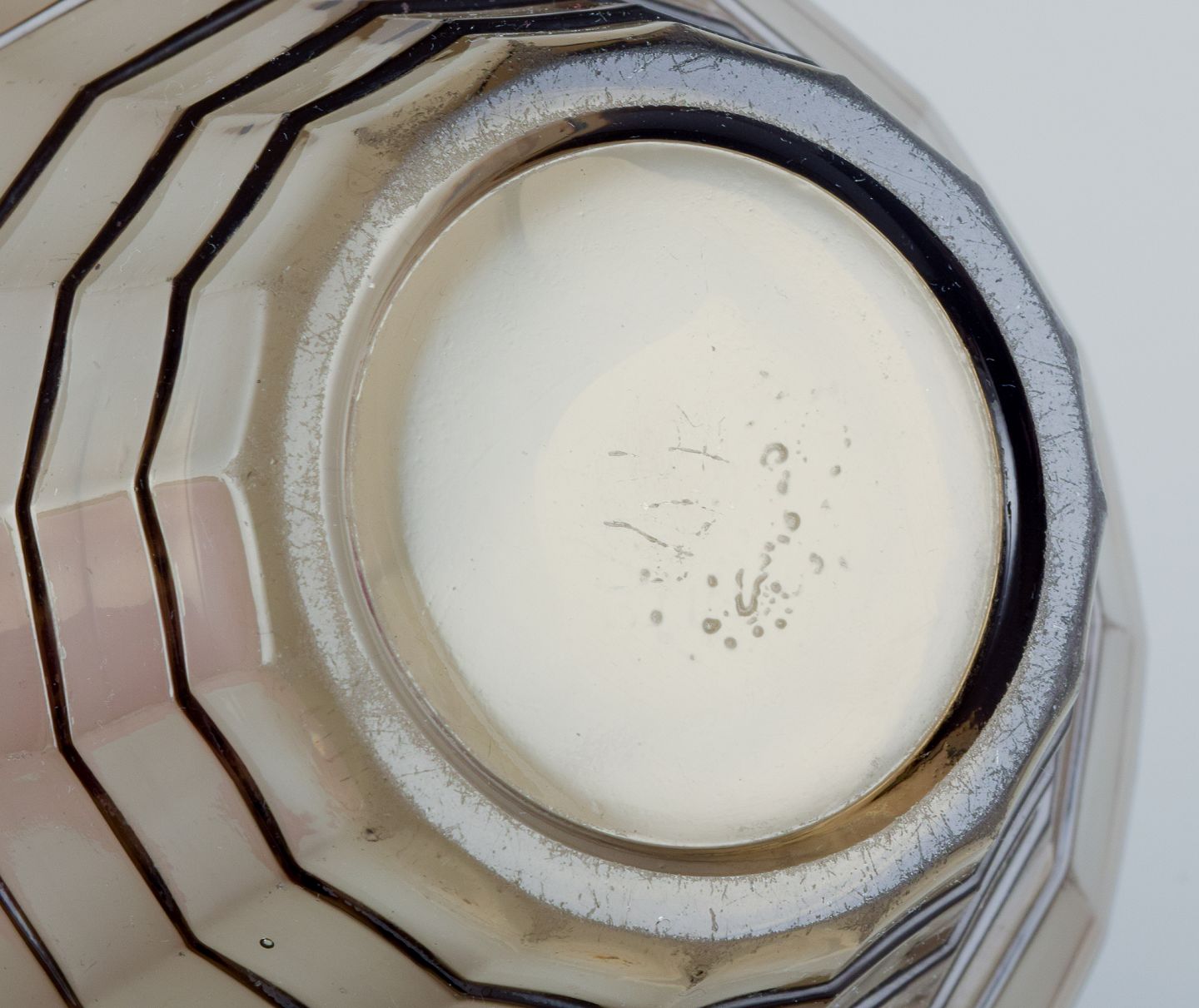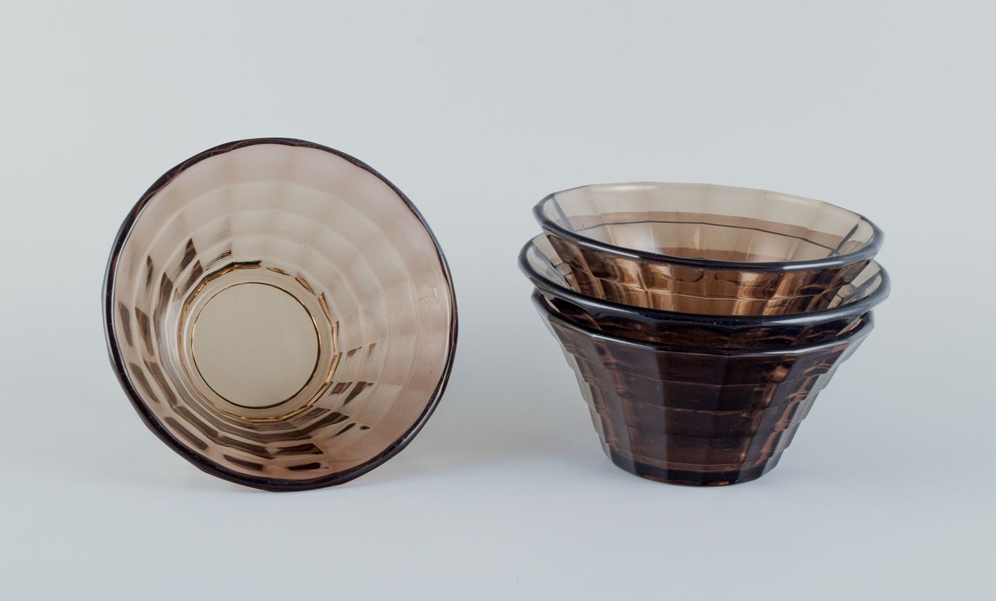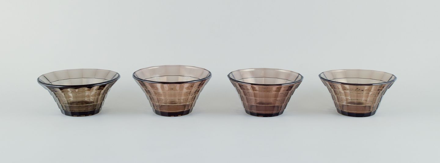 Et sæt på fire Art Deco skåle i røgfarvet presset glas.