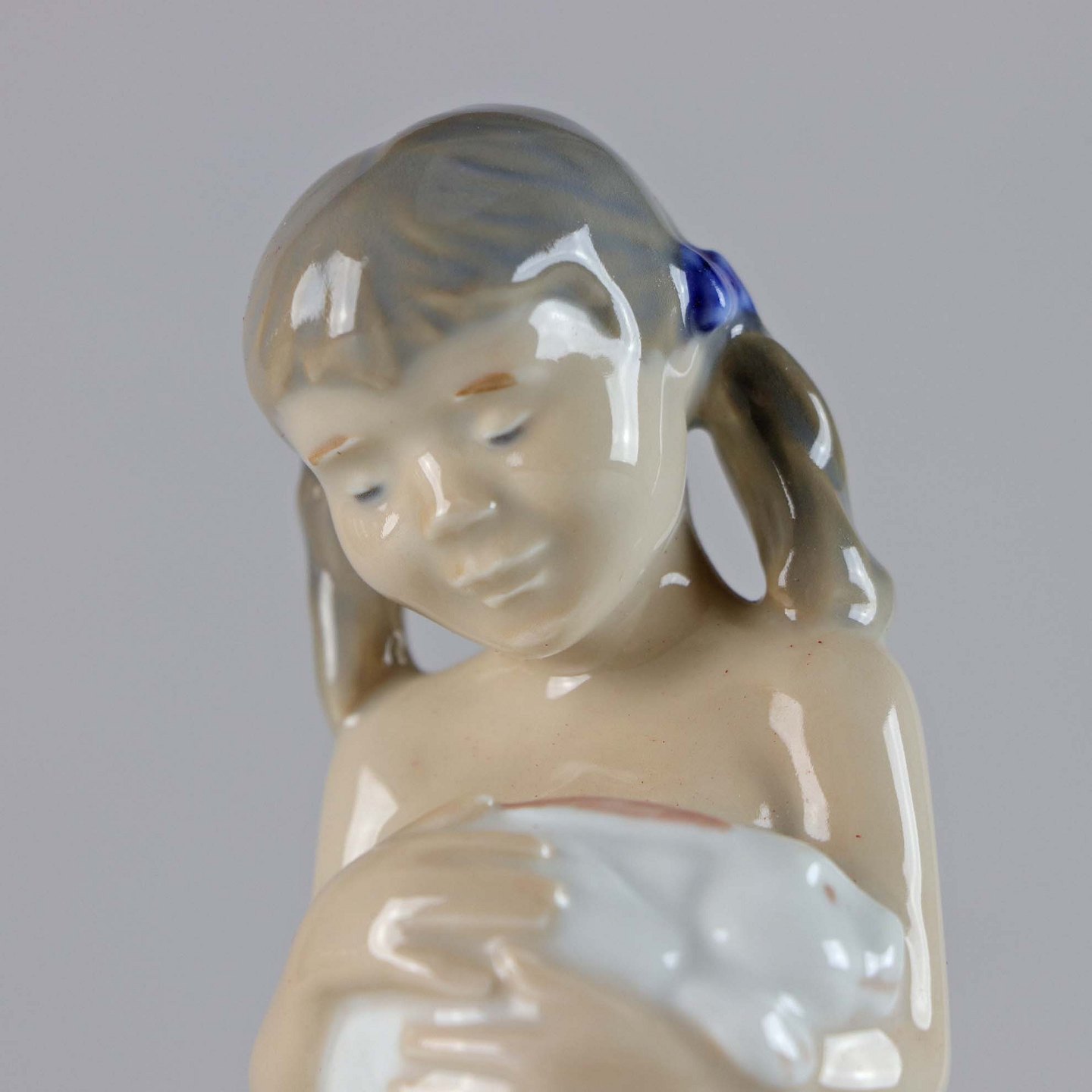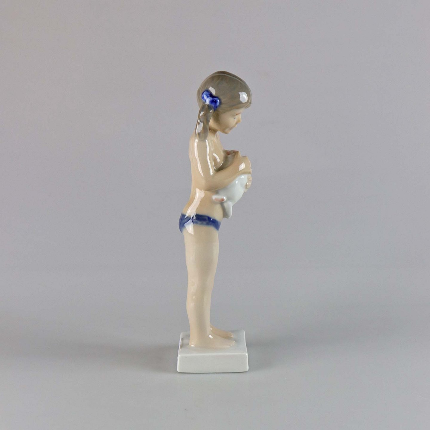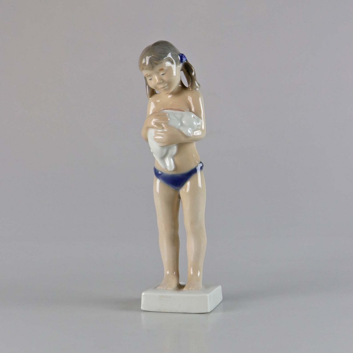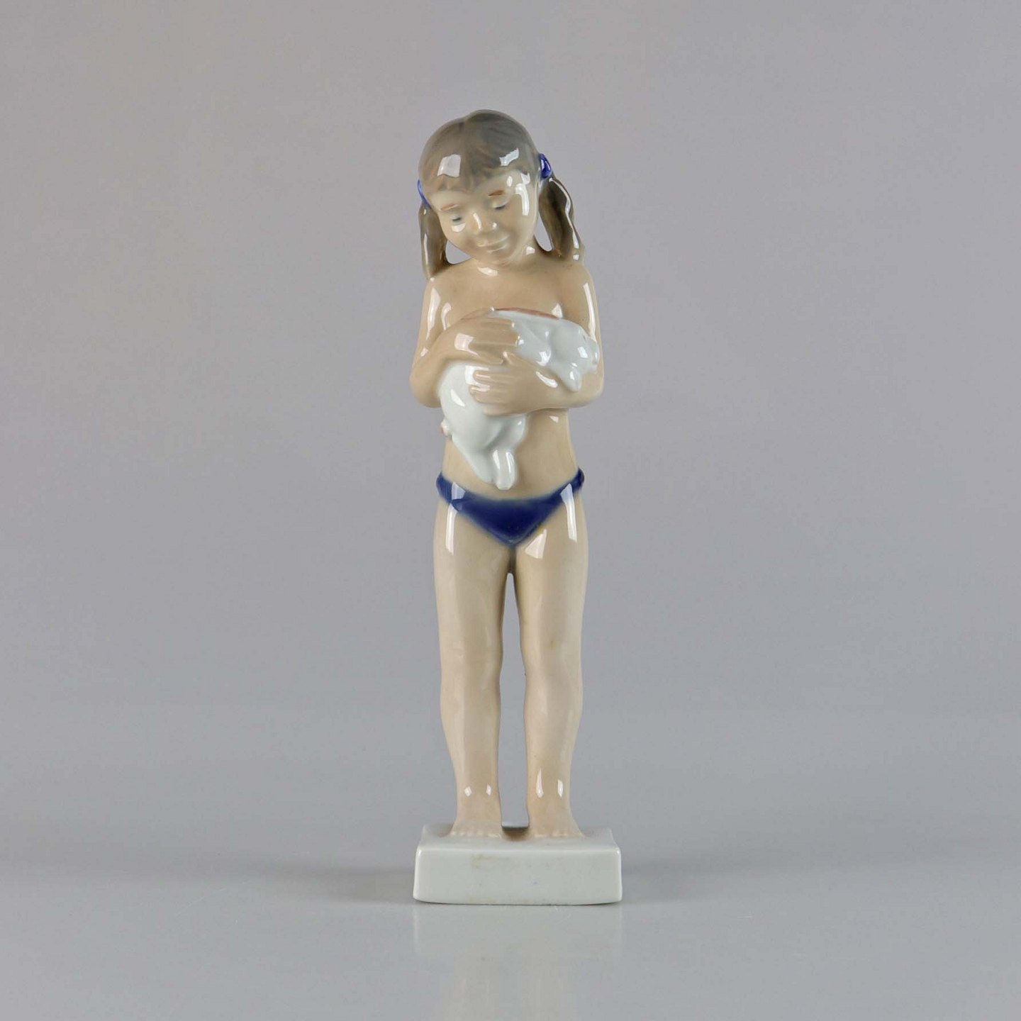 Figur i porcelæn med motiv af afklædt pige med hvid kanin no 5653