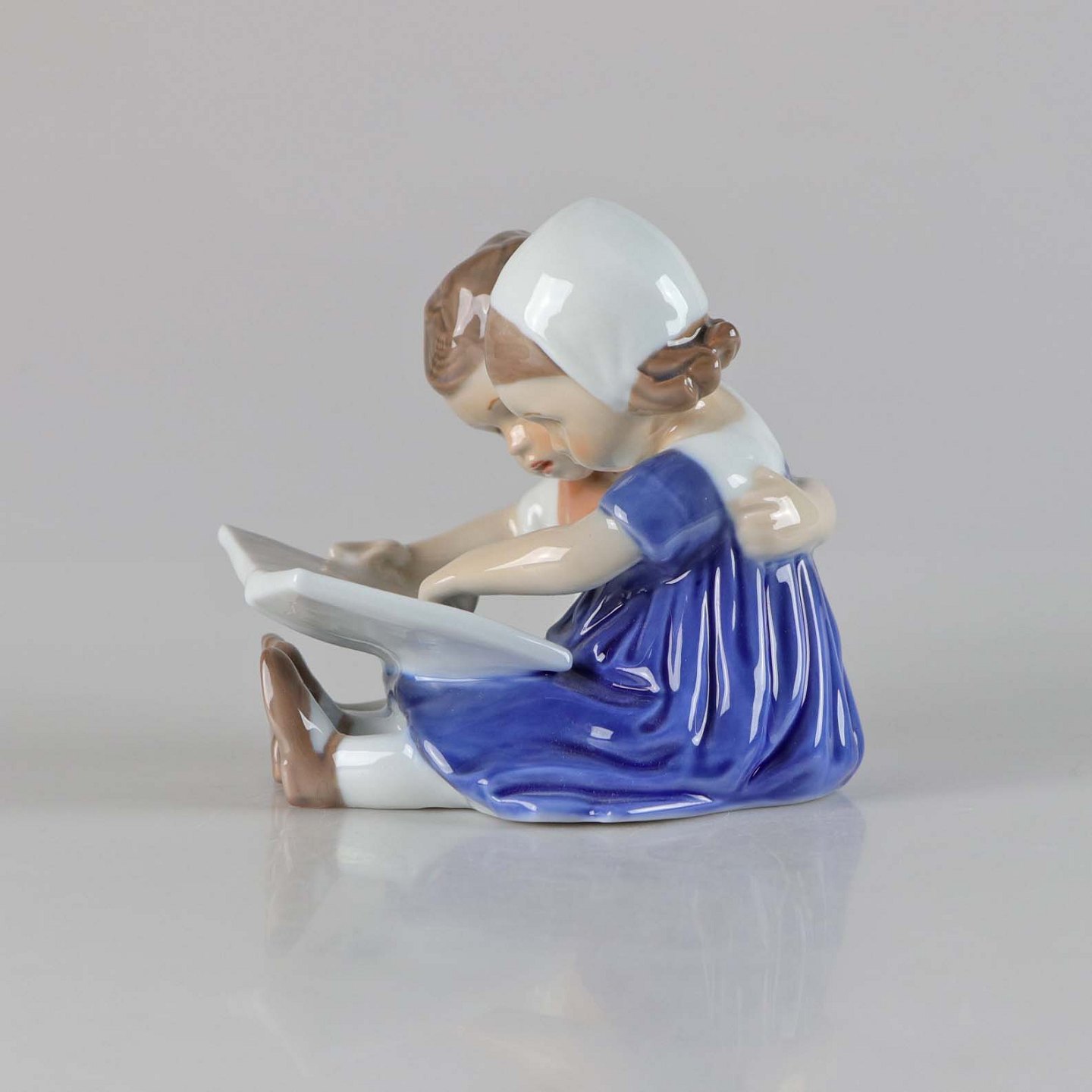 Figur i porcelæn med motiv af dreng og pige med bog no 402