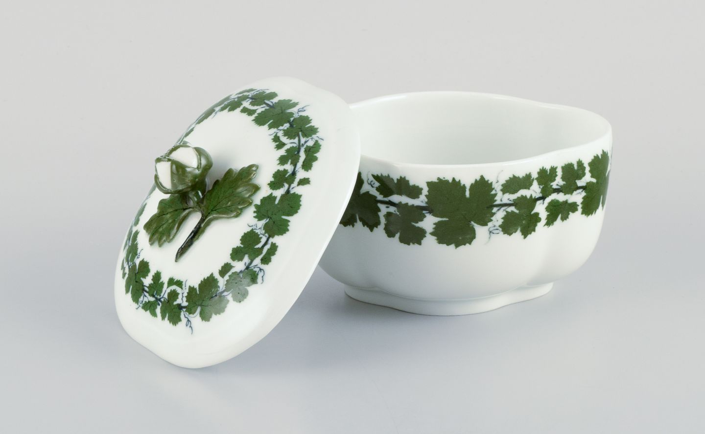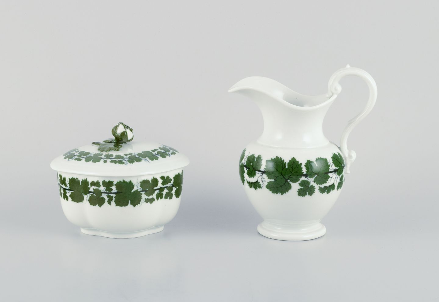 Meissen Green Ivy Vine, en stor sukkerskål samt stor flødekande.