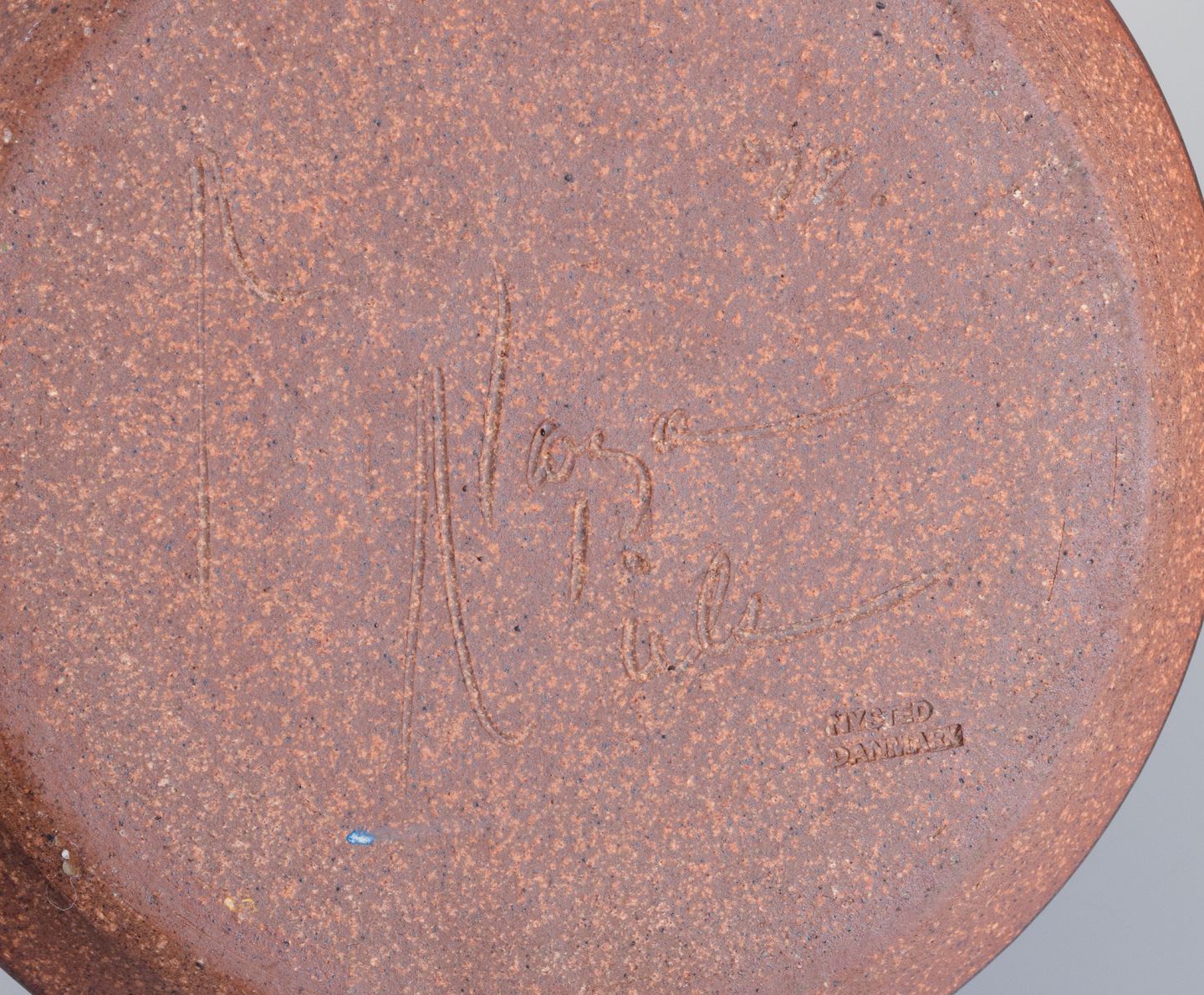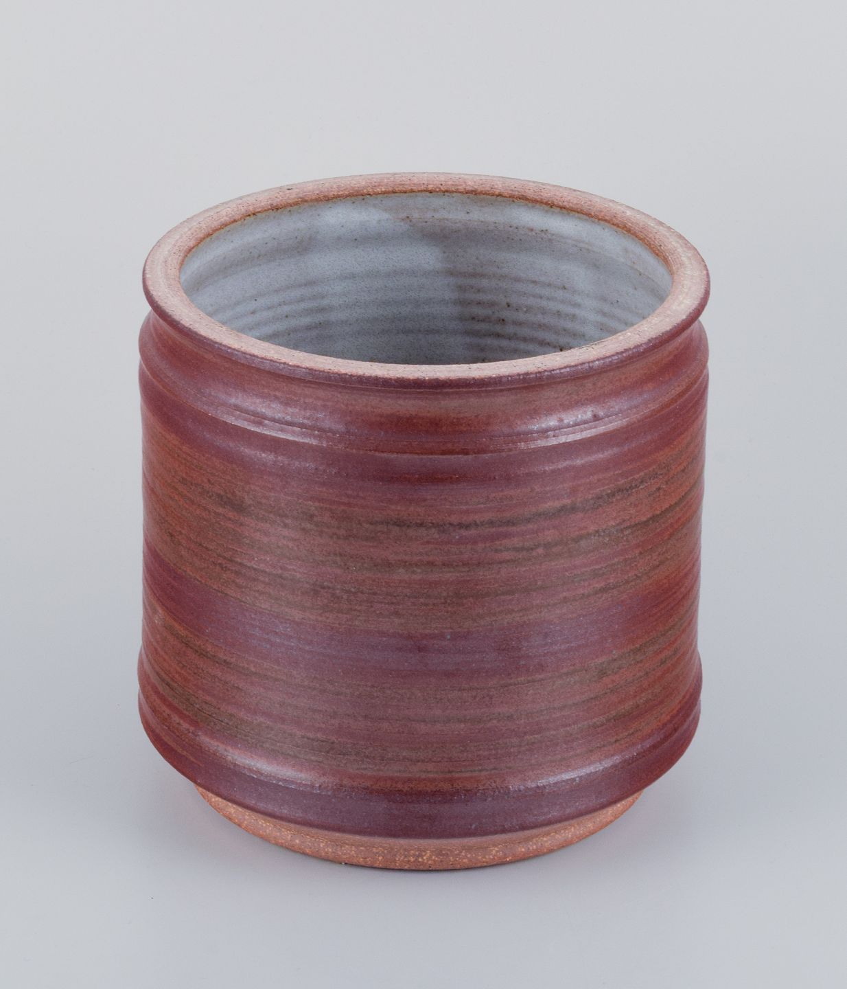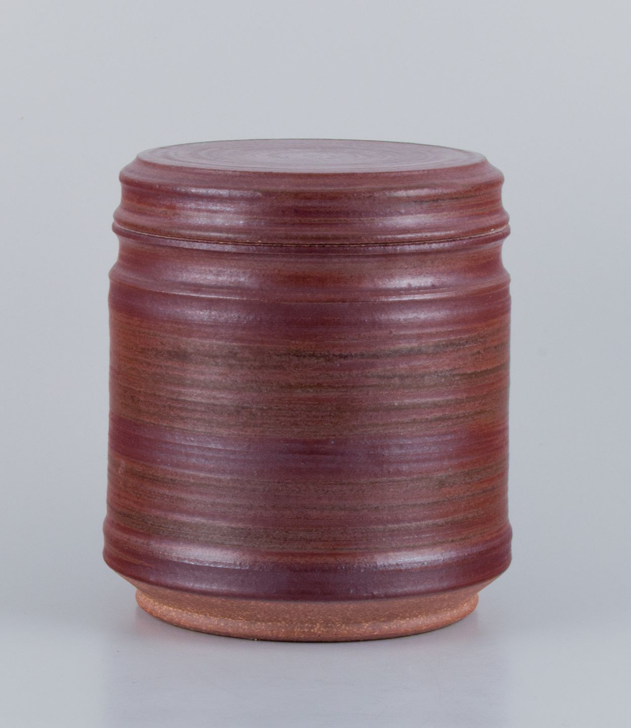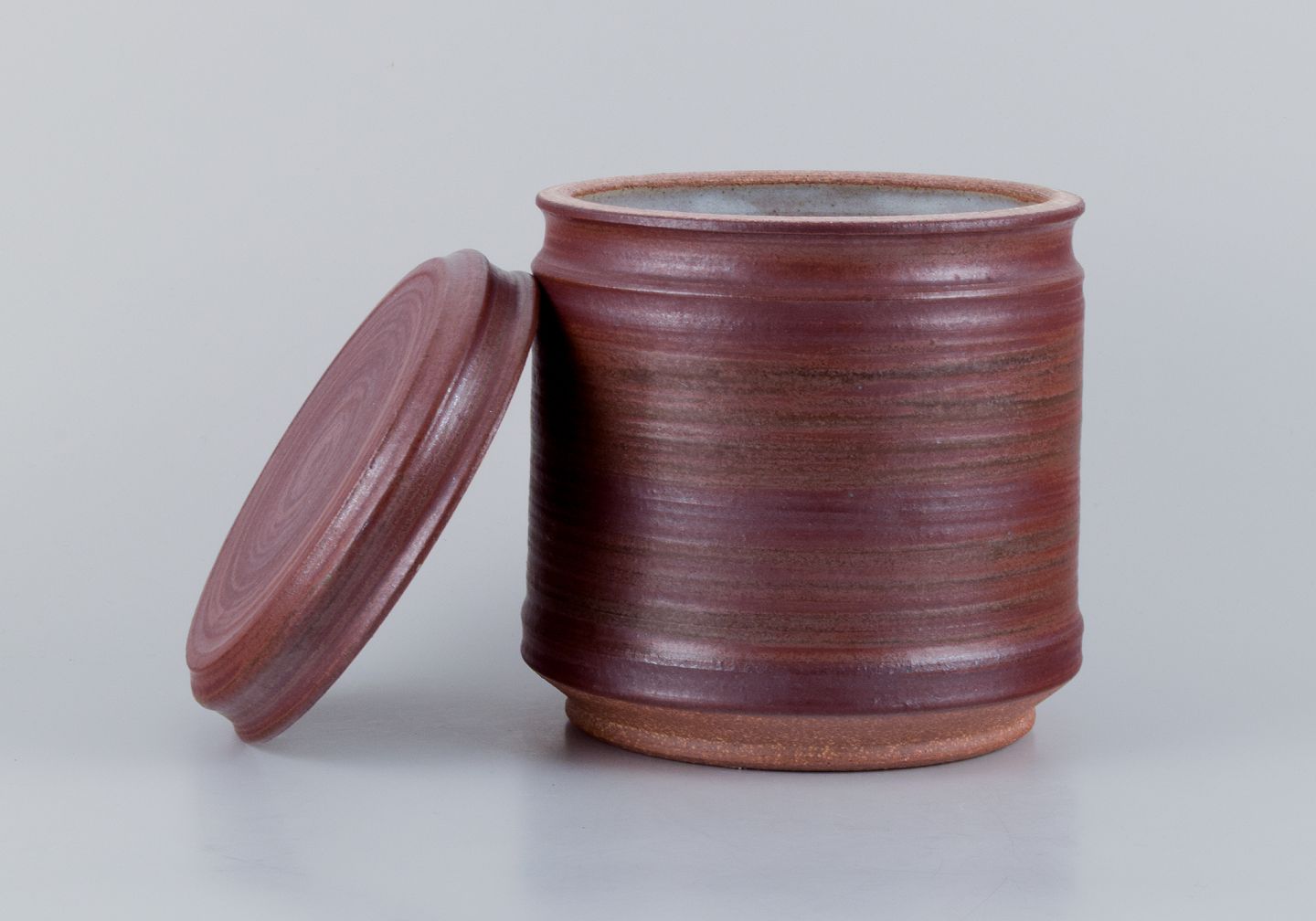 Mogens Nielsen, Nysted, kolossal håndlavet lågkrukke i keramik med glasur i brune toner.