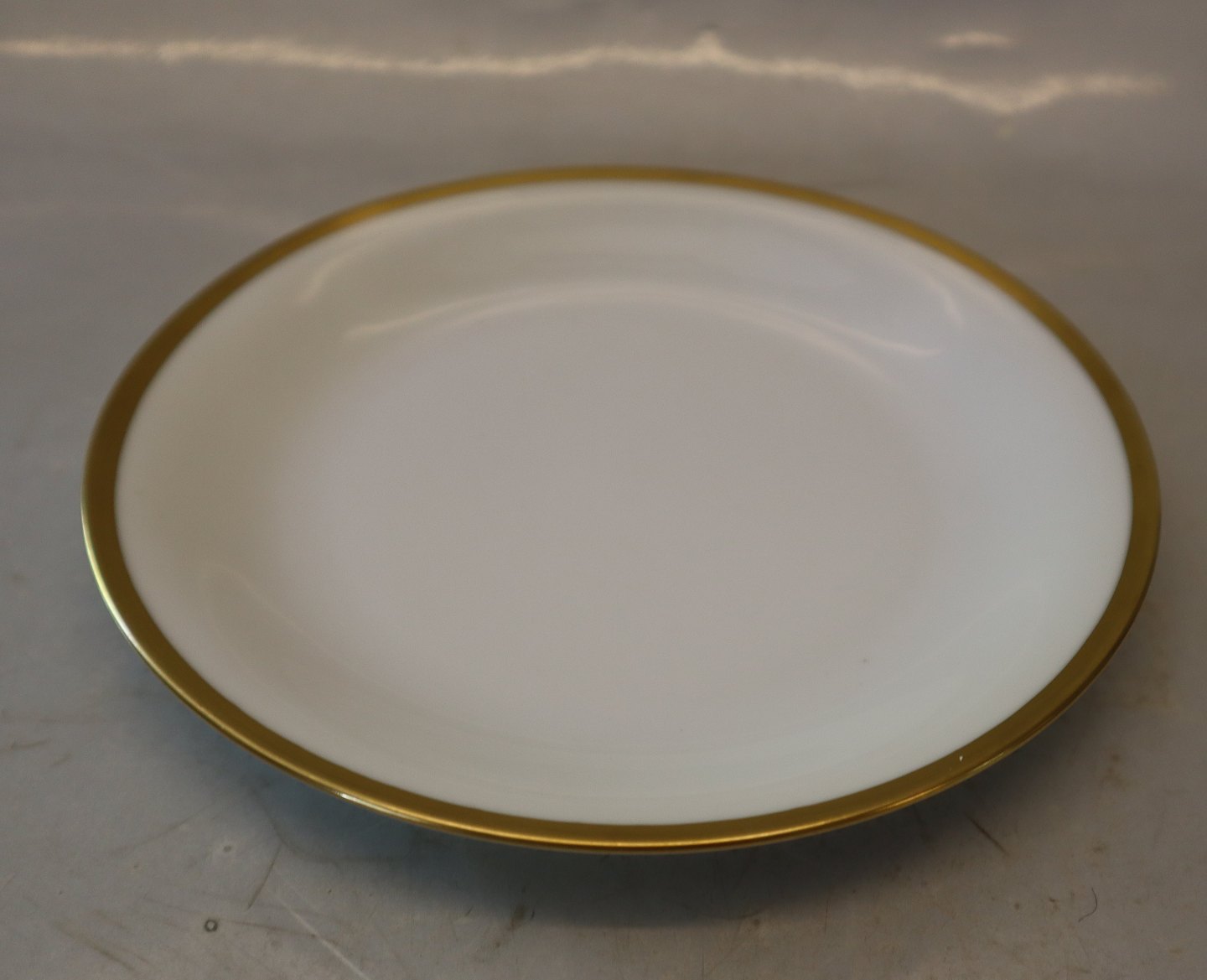 616 Kagetallerken 17 cm bred poler guldkant Antik Hvidt porcelæn med bred guldkant på antik form Bing & Grøndahl I fin og hel stand. Tilskrevet Sigward Bernadotte. Denne form findes i hvidt, med bred guldkant (Gylden Sol)