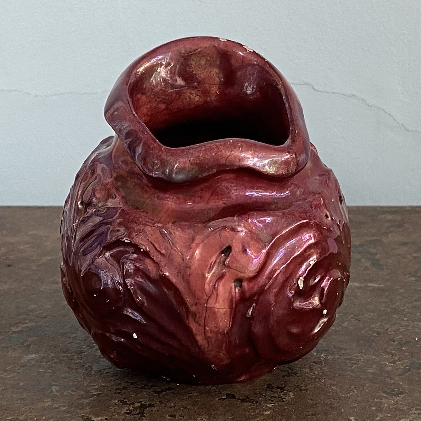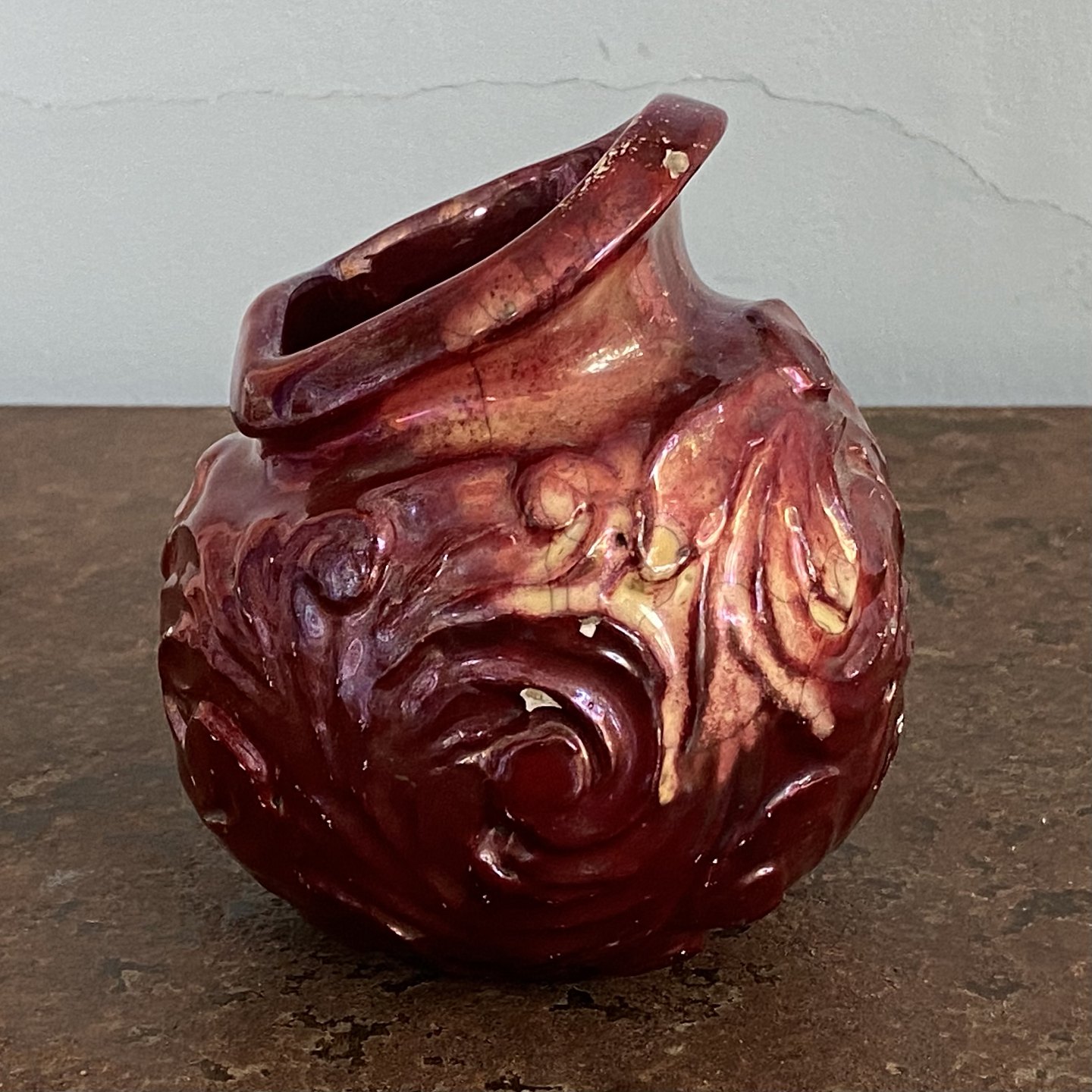 Lille vase forgivet af Svend Hammershøi i 1913 med Jens Thirslunds røde lustreglasur.