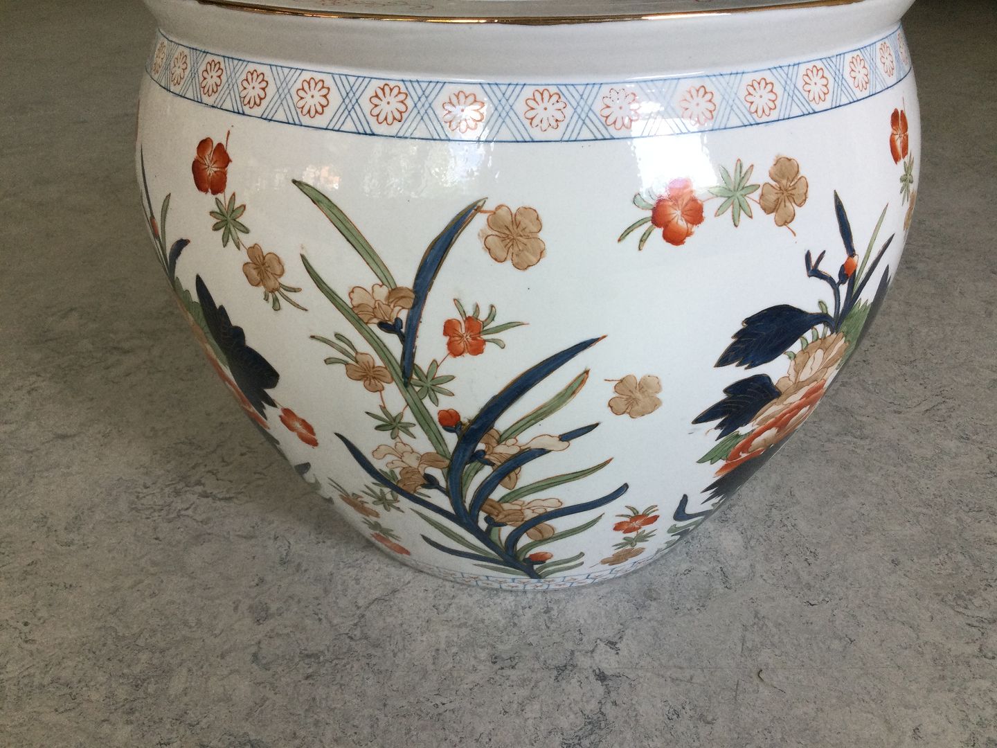 Porcelæn med polykrom dekoration i form af blomster og vandplanter.